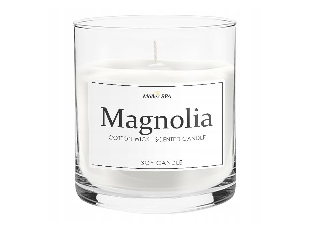 Vonná sviečka Moller SPA – Magnolia s bavlneným knôtom, sójový vosk, 75 hodín