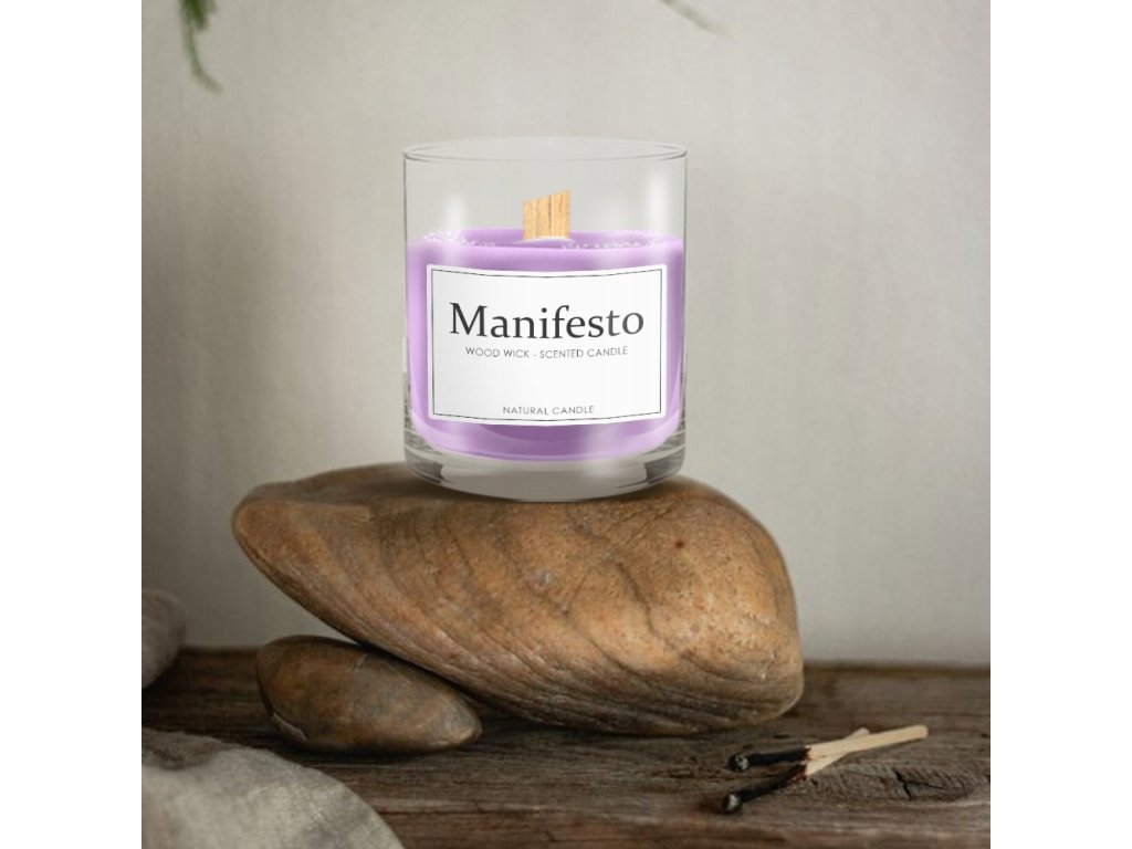 Manifesto je elegantná vonná sviečka značky Moller SPA, ktorá prináša harmonické spojenie prírodného vosku, dizajnu a vôní. Drevený knôt jemne praská pri horení a vytvára upokojujúcu atmosféru ako pri krbe. Kombinácia vôní je mimoriadne podmanivá – bergamot a čierne ríbezle pre osviežujúci začiatok, jazmín a konvalinka pre kvetinové srdce a santalové drevo s vanilkou ako hrejivý záver. Sviečka je vyrobená zo 100 % sójového vosku bez toxických látok a poteší nielen vás, ale aj ako krásny darček.