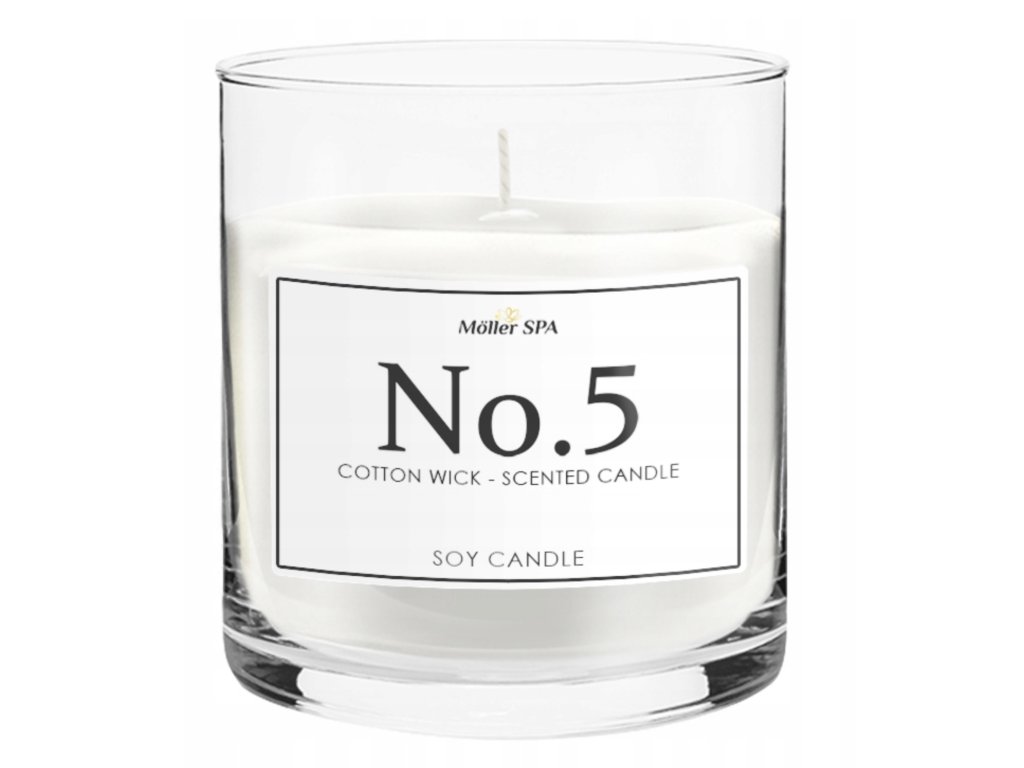Vonná sviečka Moller SPA – No.5 s bavlneným knôtom, sójový vosk, 75 hodín