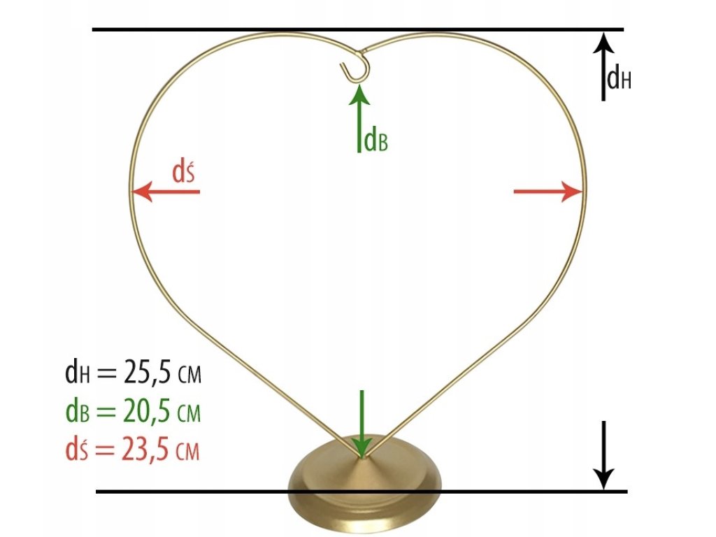 Tento zlatý kovový stojan v tvare srdca je navrhnutý na štýlové vystavenie sviatočných ozdôb. Vďaka jemnému tvaru a hornému očku vyniknú vianočné gule, veľkonočné vajíčka alebo iné dekorácie, ktoré chcete zvýrazniť bez rušivých detailov.