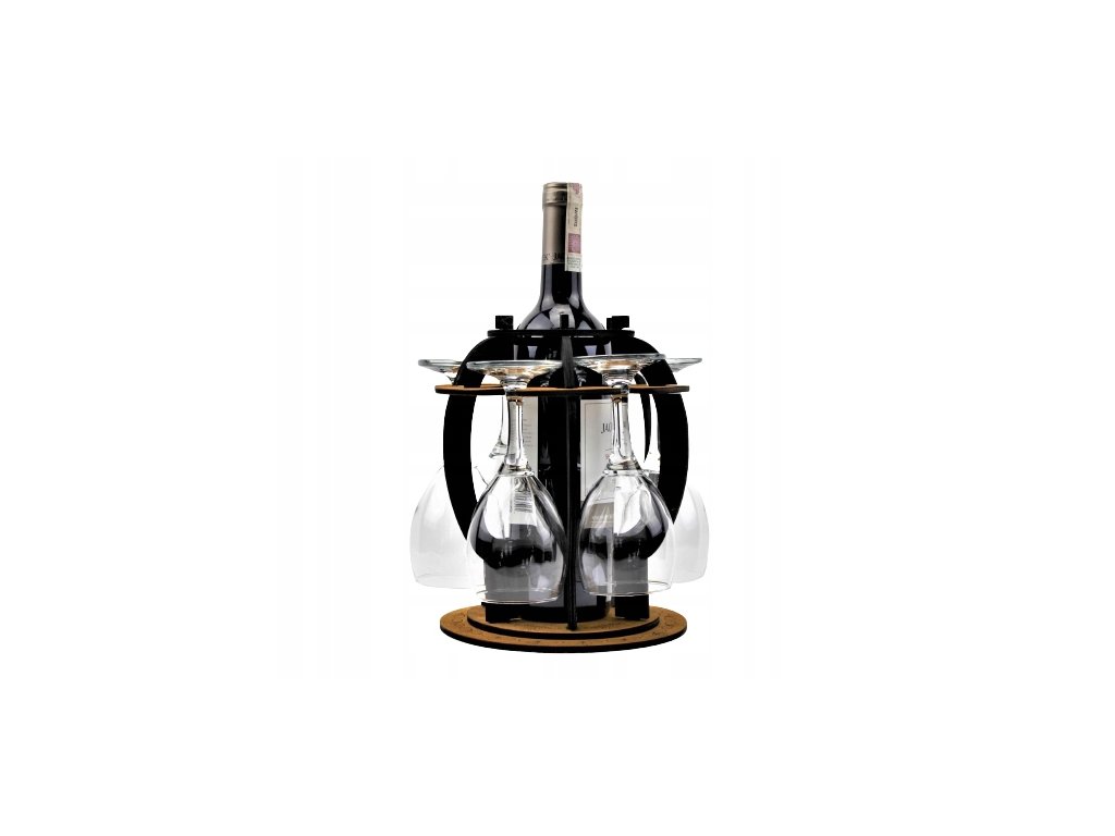 Štýlový drevený stojan na víno s miestom na jednu fľašu a šesť pohárov na víno je elegantným doplnkom aj praktickým darčekom. Vyrobený z laserom rezaného dreva v čierno-prírodnej kombinácii, zaujme svojim vzhľadom a jemnými dekoratívnymi prvkami. Súčasťou balenia je aj ozdobná fólia a rafia na zabalenie darčeka, takže ho môžete ihneď darovať bez ďalších starostí.