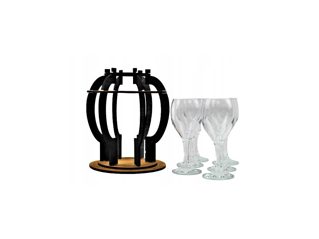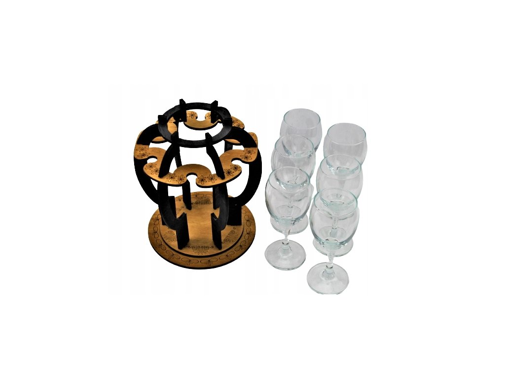 Darčekový stojan na víno s pohármi – laserom vyrezávaný dizajn, 6 pohárov