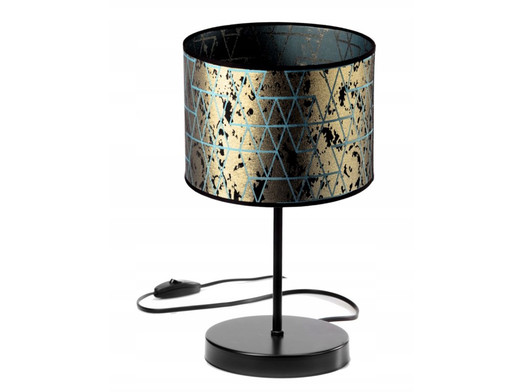 Elegantná stolná lampa zo série Mystic Gold spája matnú čiernu konštrukciu s výrazným tienidlom v odtieňoch tyrkysu a zlata. Povrch tienidla jemne trblieta drobnými zlatými čiastočkami a geometrický vzor pôsobí moderne aj sofistikovane. Lampa vytvorí príjemnú atmosféru na komode, nočnom stolíku či pracovnom stole.