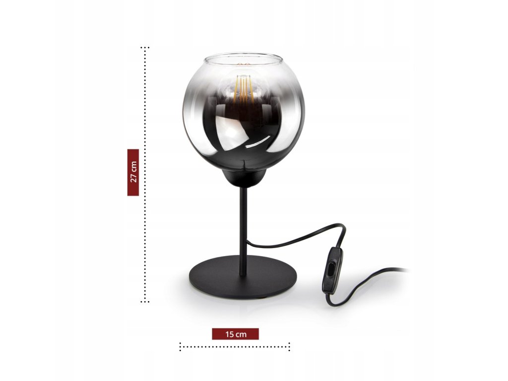 Štýlová stolová lampa zo série Smoke Globe je kombináciou čiernej kovovej konštrukcie a dymového skleneného tienidla. Guľaté tienidlo v grafitovo-transparentnom odtieni krásne rozptyľuje svetlo a dodáva priestoru útulnú atmosféru. Moderný dizajn pôsobí elegantne a hodí sa do obývačky, spálne, pracovne či na nočný stolík.