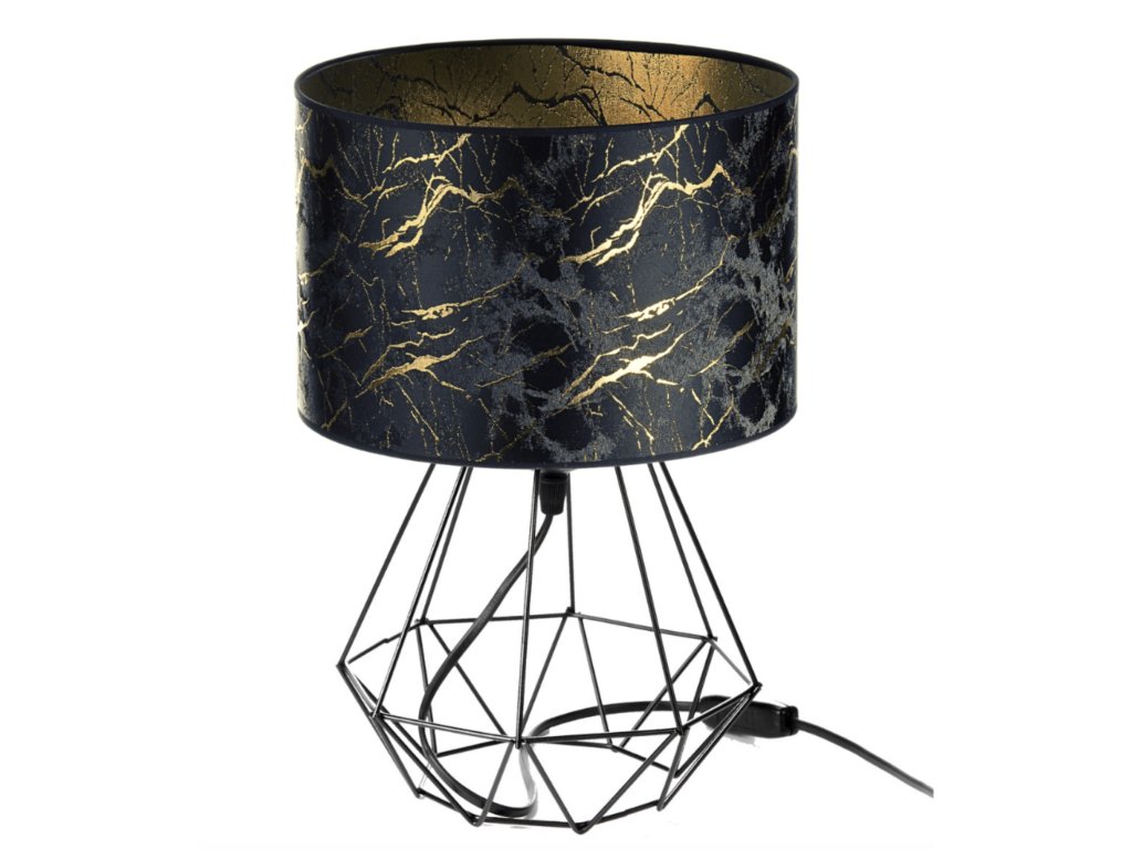 Stolová lampa Black Marble Gold – geometrický kovový podstavec a čierno-zlaté mramorové tienidlo