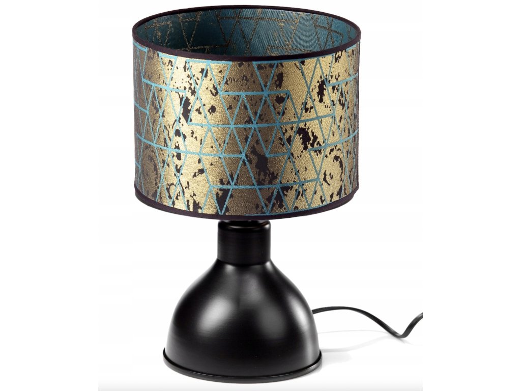 Táto moderná stolová lampa zo série Mystic Gold prináša do interiéru šarm, eleganciu a jedinečný dizajn. Tyrkysovo-zlaté tienidlo s geometrickým vzorom pôsobí originálne a zároveň luxusne. Vnútorná reflexná vrstva rozptyľuje svetlo do jemných odleskov, ktoré vytvárajú útulnú atmosféru v spálni, pracovni aj v obývacej izbe.