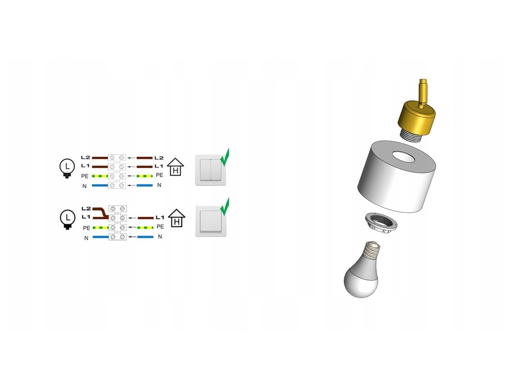 - Elektrické zapojenie: podporuje dva nezávislé obvody (dvojitý vypínač) alebo premostenie na jeden vypínač