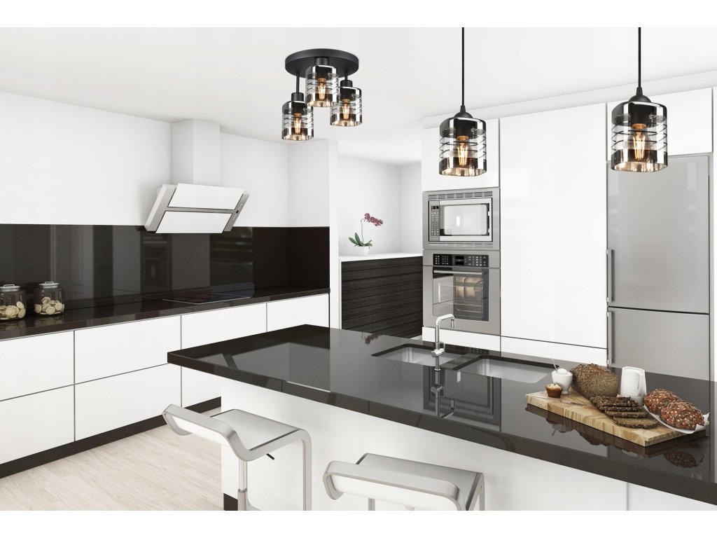 - 🩶 Tri sklenené tienidlá so striebornými pásmi – harmonický dizajn a efektná hra svetla