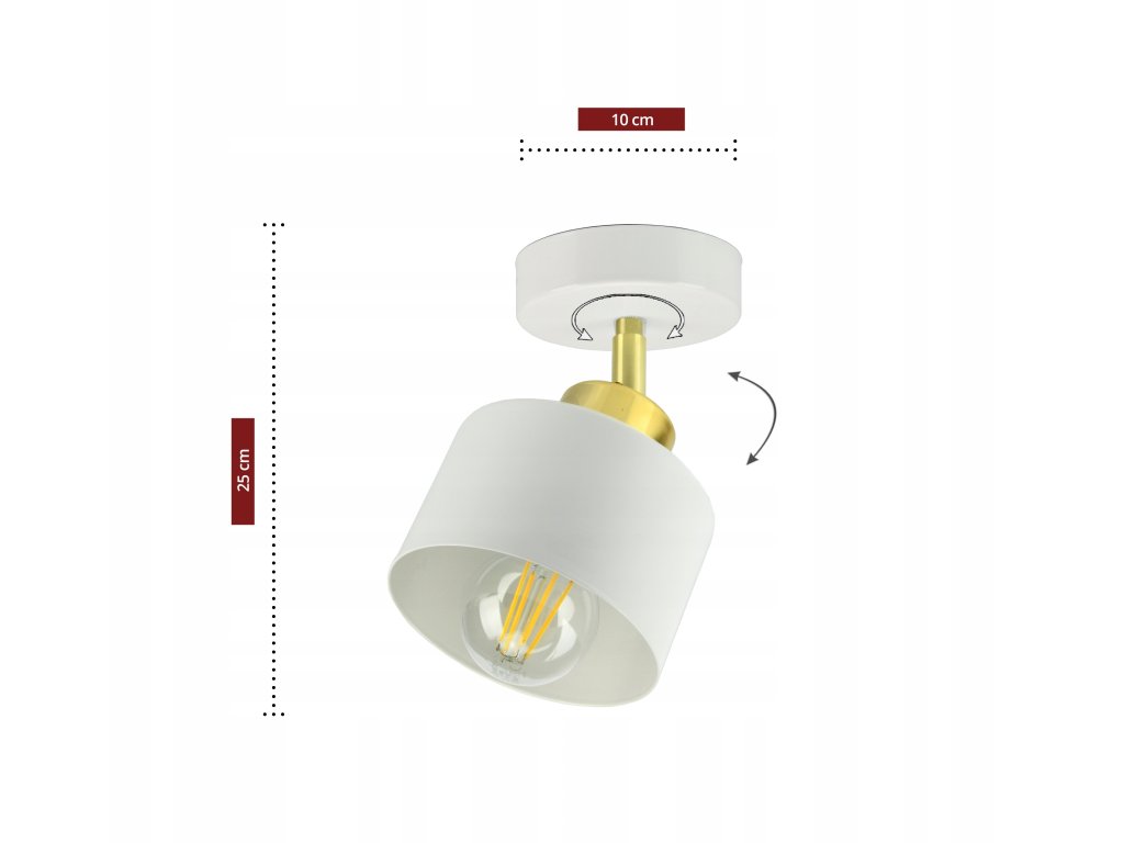 Jednoduché, no elegantné stropné svietidlo zo série White Gold sa skvelo hodí do menších priestorov, chodby či predsiene. Biele tienidlo v tvare valca s decentným zlatým detailom pôsobí moderne a pritom nadčasovo. Vďaka pohyblivej konštrukcii si môžete jednoducho nastaviť smer svetla a nasvietiť presne to miesto, ktoré chcete zvýrazniť – obrazy, zrkadlá či dekorácie.