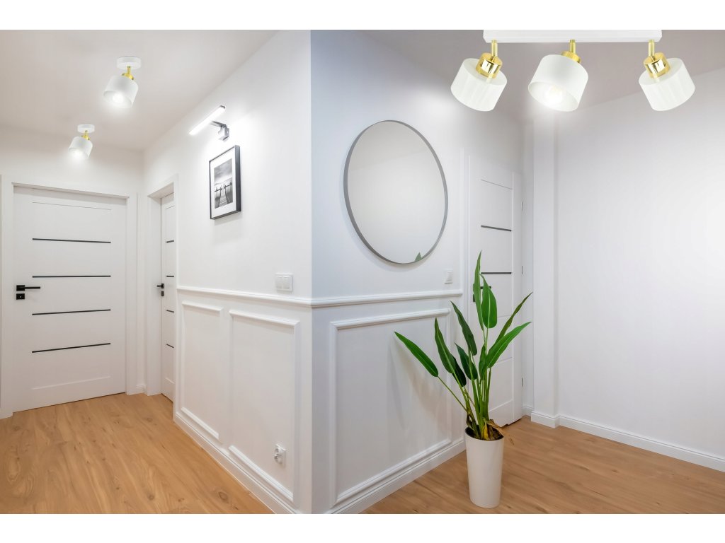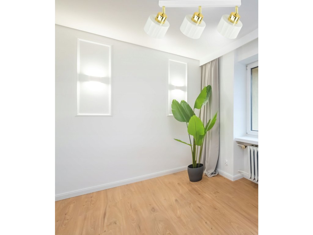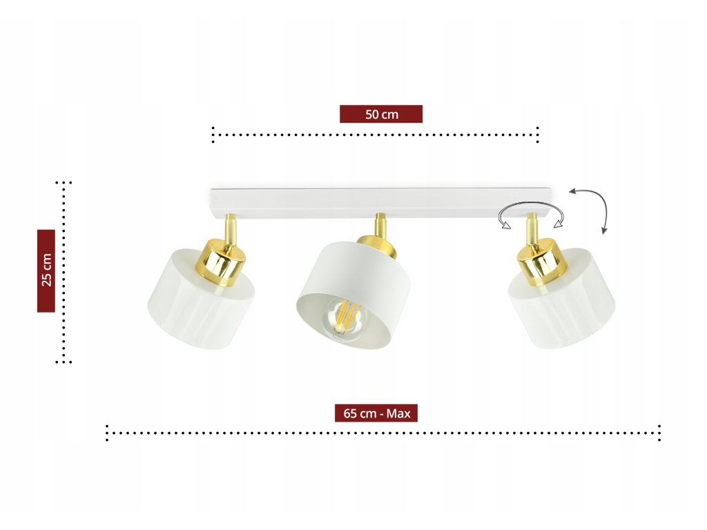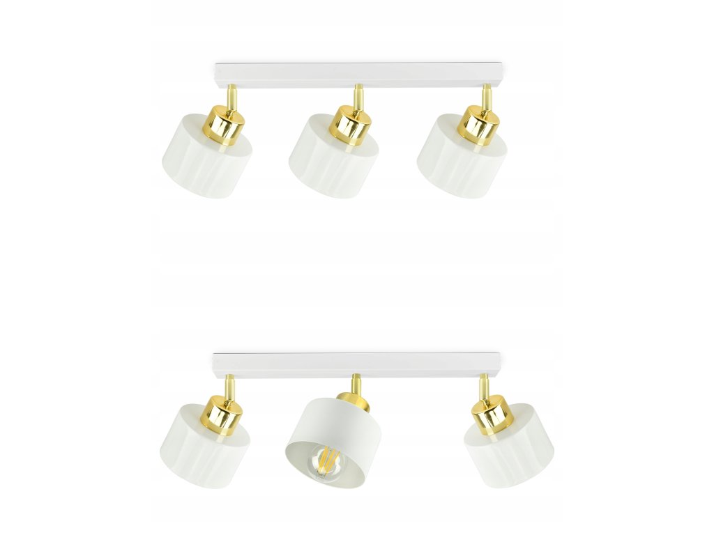 Moderné stropné svietidlo zo série White Gold spája minimalistickú bielu farbu s luxusnými zlatými detailmi. Tri kovové tienidlá v tvare valca pôsobia moderne a zároveň vytvárajú príjemnú atmosféru v každom interiéri – od obývačky cez spálňu až po kuchyňu či chodbu.