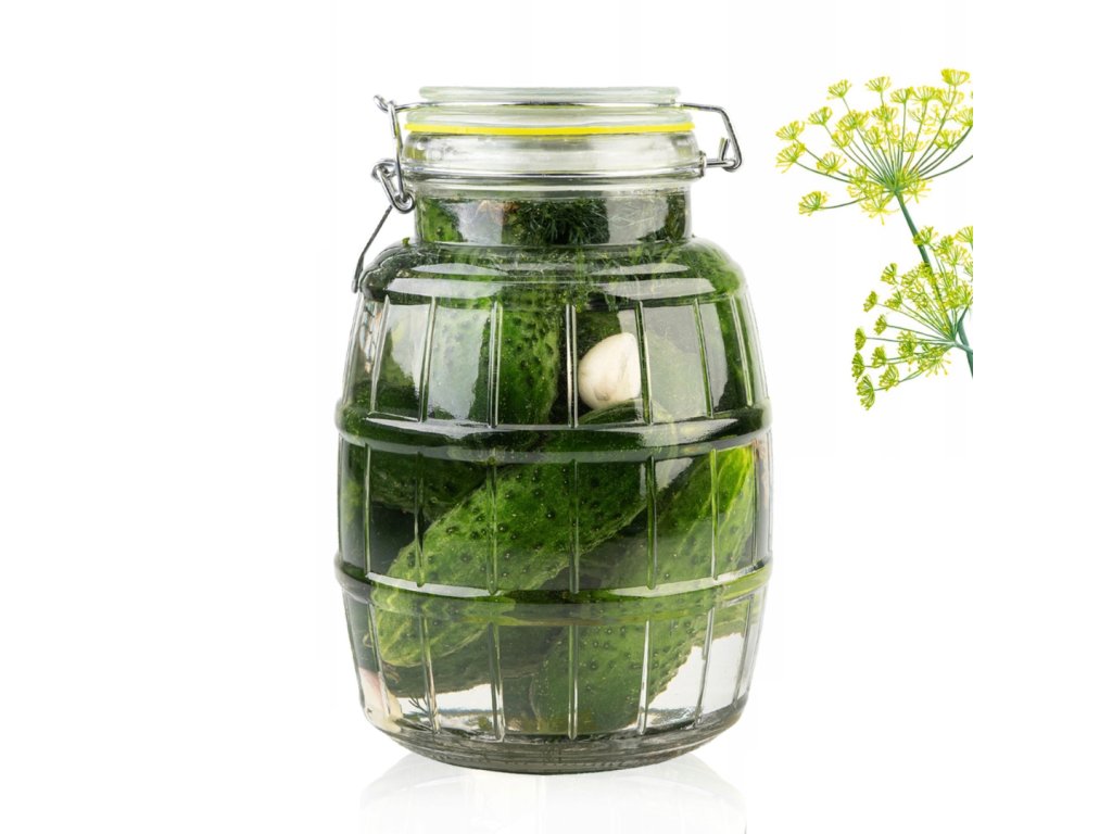 Sklenený súdok s klipsovým uzáverom a žltým silikónovým tesnením je výnimočný doplnok do každej špajze. Vďaka tvaru inšpirovanému klasickým dreveným sudom a rôznym objemom sa hodí na zaváranie uhoriek, kapusty, ovocia či na prípravu domácich nálevov. Kvalitné číre sklo umožňuje kontrolovať obsah bez otvárania, zatiaľ čo pevné pántové zatváranie zabezpečí dlhodobú čerstvosť.