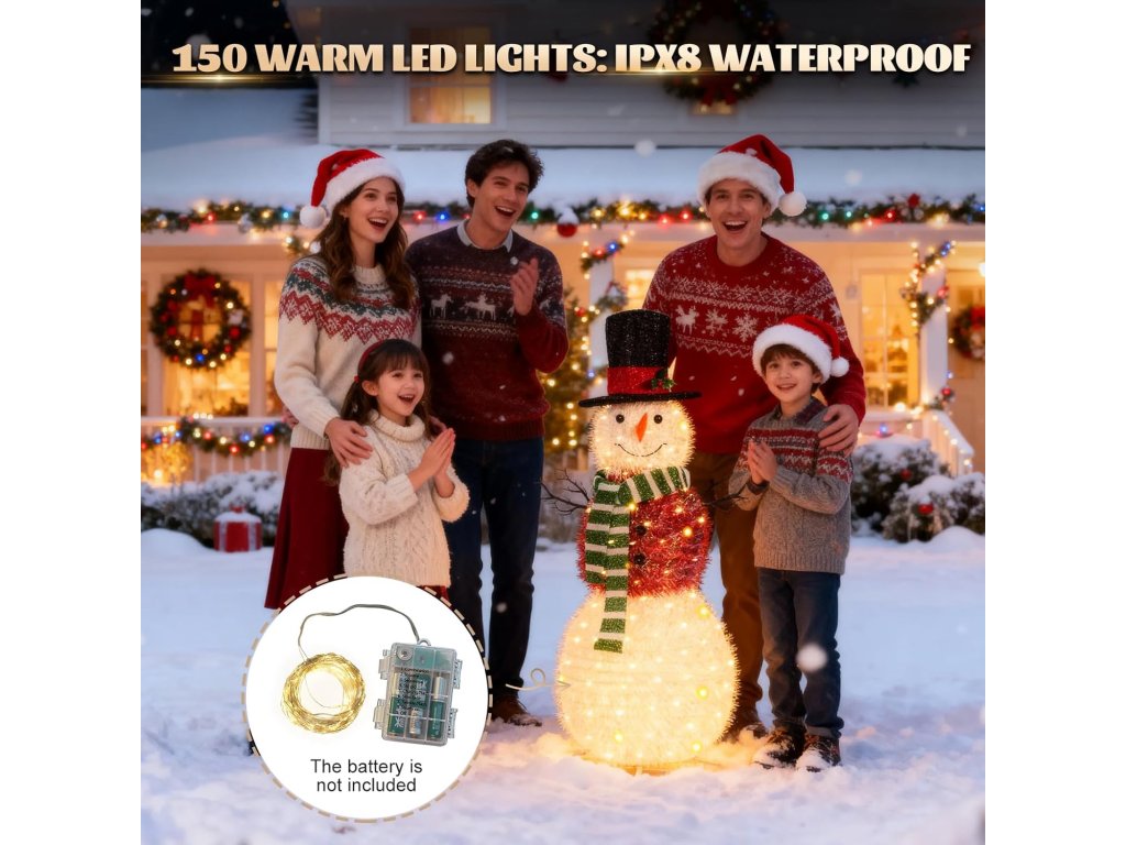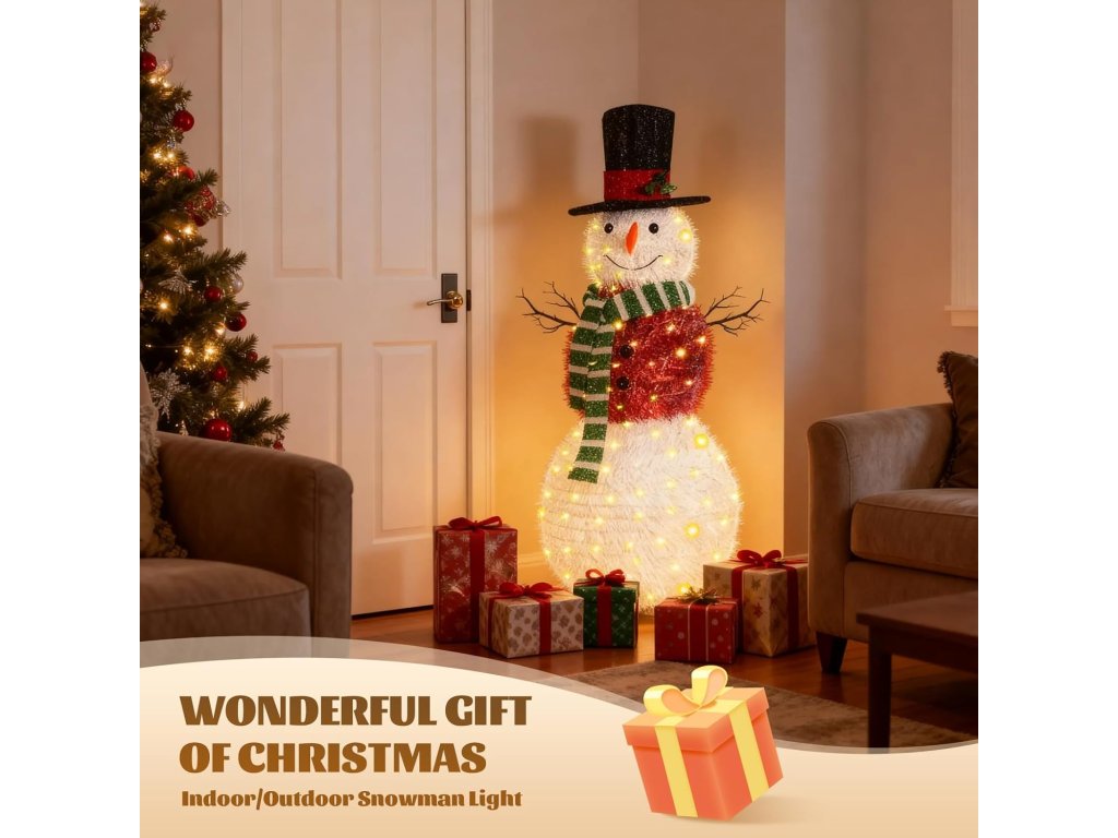 LED snehuliak 120 cm – skladacia vianočná dekorácia so 150 teplými LED svetlami