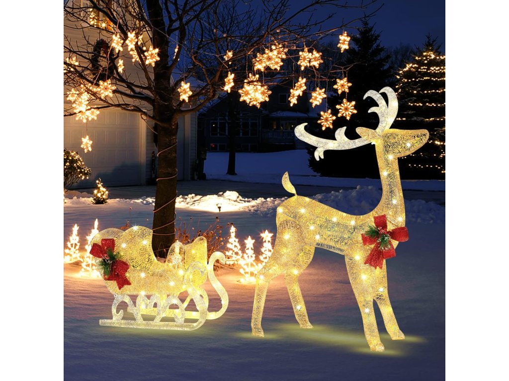 - 🦌 Elegantný sob s parohami a klasické sane so svetielkami