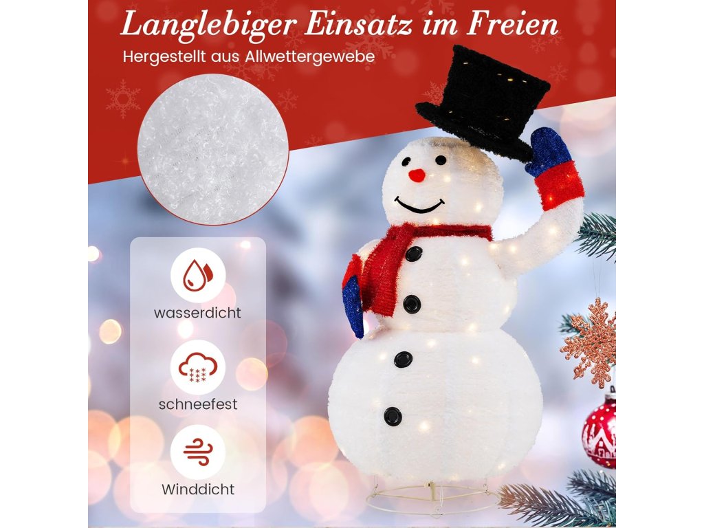LED snehuliak 130 cm – veľká vianočná dekorácia so 120 LED, pohyblivým klobúkom a odolnou konštrukciou