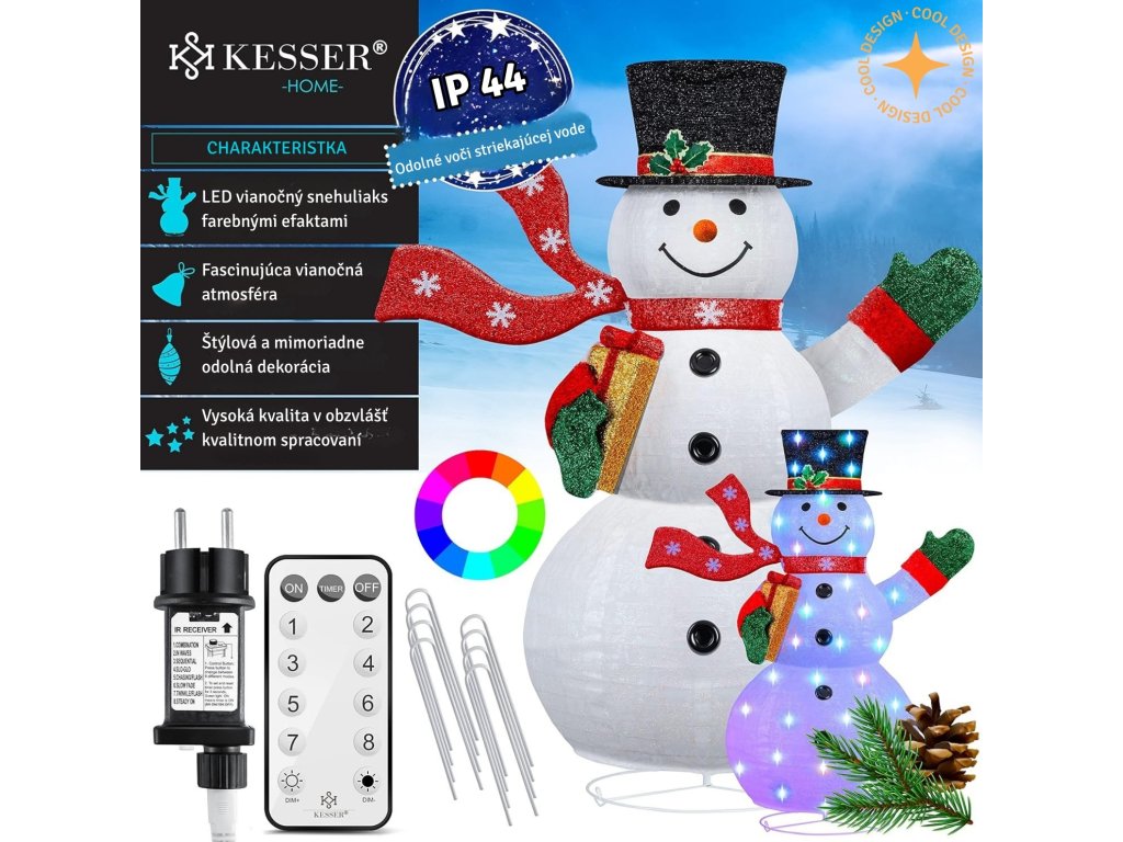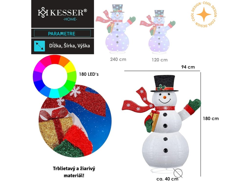 LED snehuliak 180 cm – vianočná dekorácia so 180 RGB LED svetlami, časovačom a diaľkovým ovládaním
