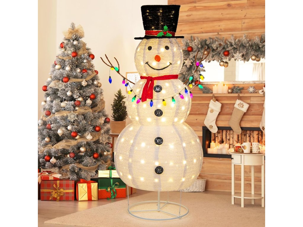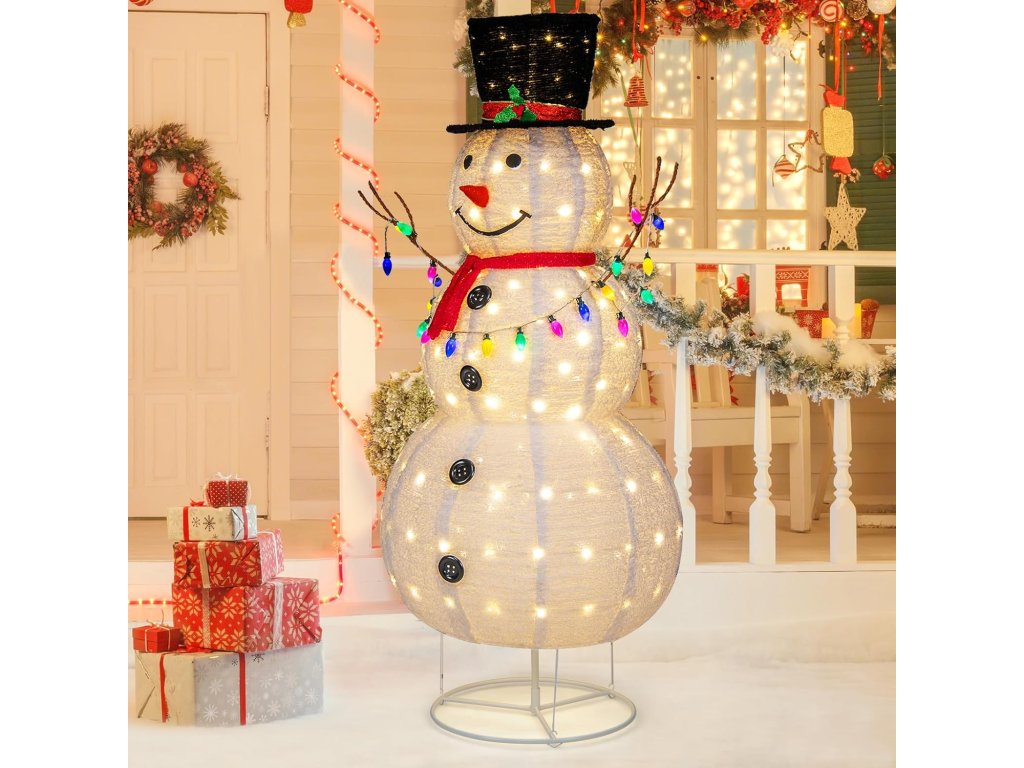 Očarujte svoju rodinu a susedov týmto LED snehuliakom vysokým 180 cm, ktorý sa stane centrom vašej vianočnej výzdoby. Je vybavený 180 teplými bielymi LED svetlami a doplnený o 20 pestrofarebných žiaroviek na svetelnej reťazi, ktoré vytvárajú jedinečný sviatočný efekt.