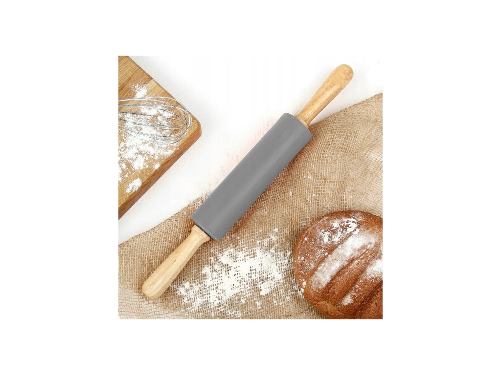 Nepriľnavý silikónový valček na cesto – sivý, s otočnou časťou