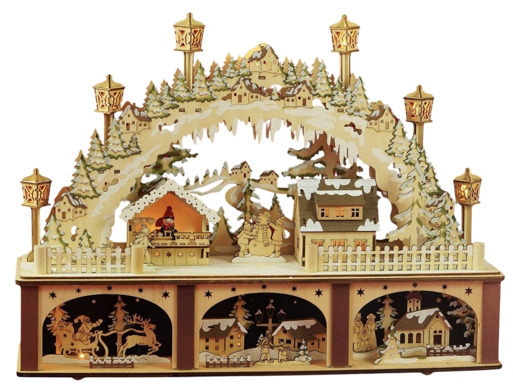 Objavte drevenú LED vianočnú dedinku s tradičnými domčekmi z Krušných hôr, ktorá prinesie do vášho domova nezameniteľné čaro. Precízne vyrezávané detaily, postavičky a zimné stromčeky navodia autentickú atmosféru zasneženej dediny a stanú sa ozdobou vášho interiéru.