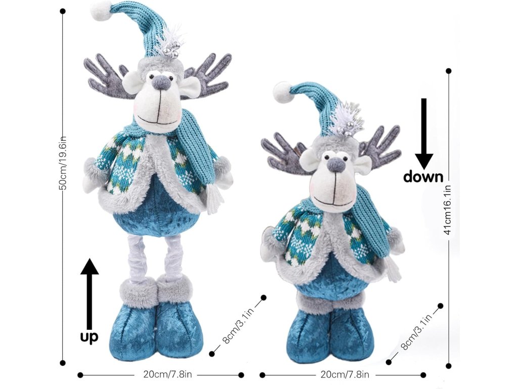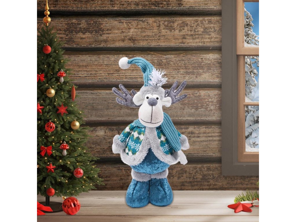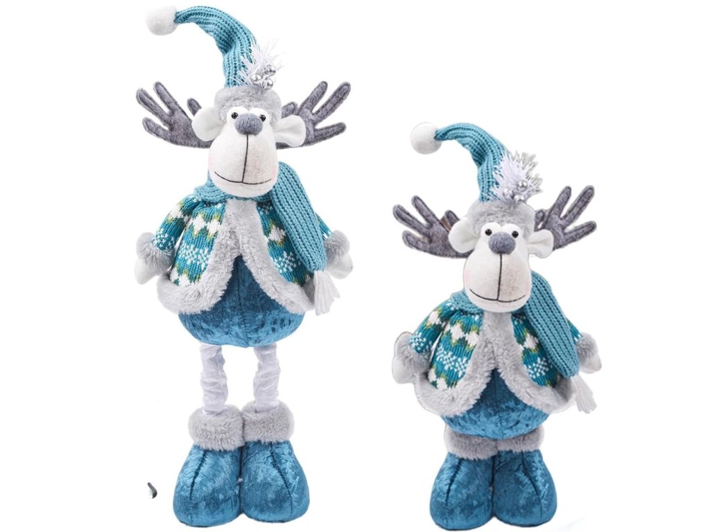 Vianočný sob s teleskopickými nohami – modro-sivá plyšová dekorácia, 50 cm