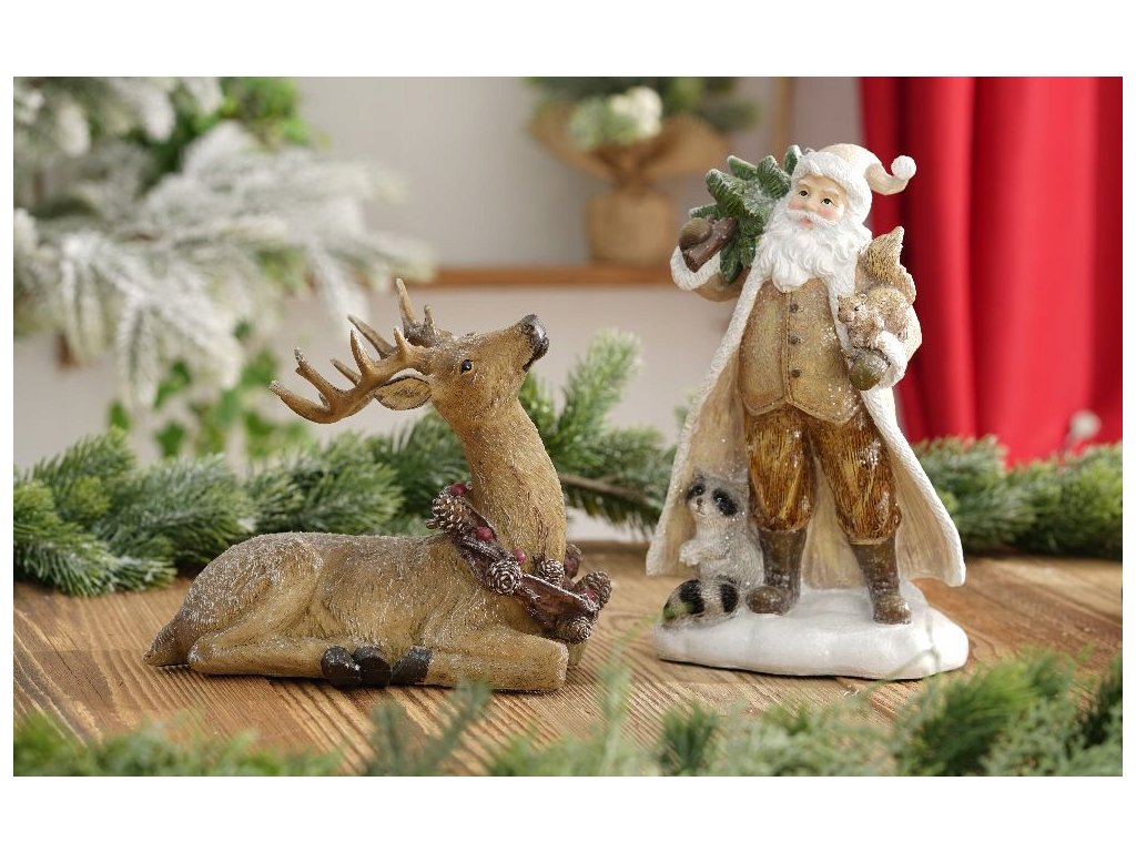 Každý kus je ručne maľovaný s dôrazom na detail – od realistickej brady až po drobné vetvičky a snehové odlesky. Táto dekorácia sa dokonale hodí na komodu, poličku alebo k vianočnému stromčeku a svojím teplým lesným štýlom rozžiari každý domov.