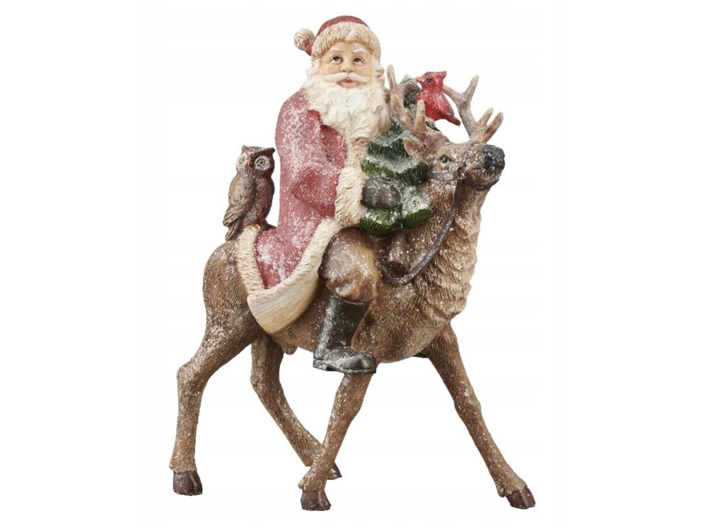 Vianočný Mikuláš na sobovi – figúrka s lesnou tematikou, 28 cm