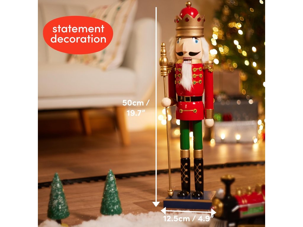 Vianočný luskáčik kráľ – veľká drevená figúrka s korunou, 50 cm