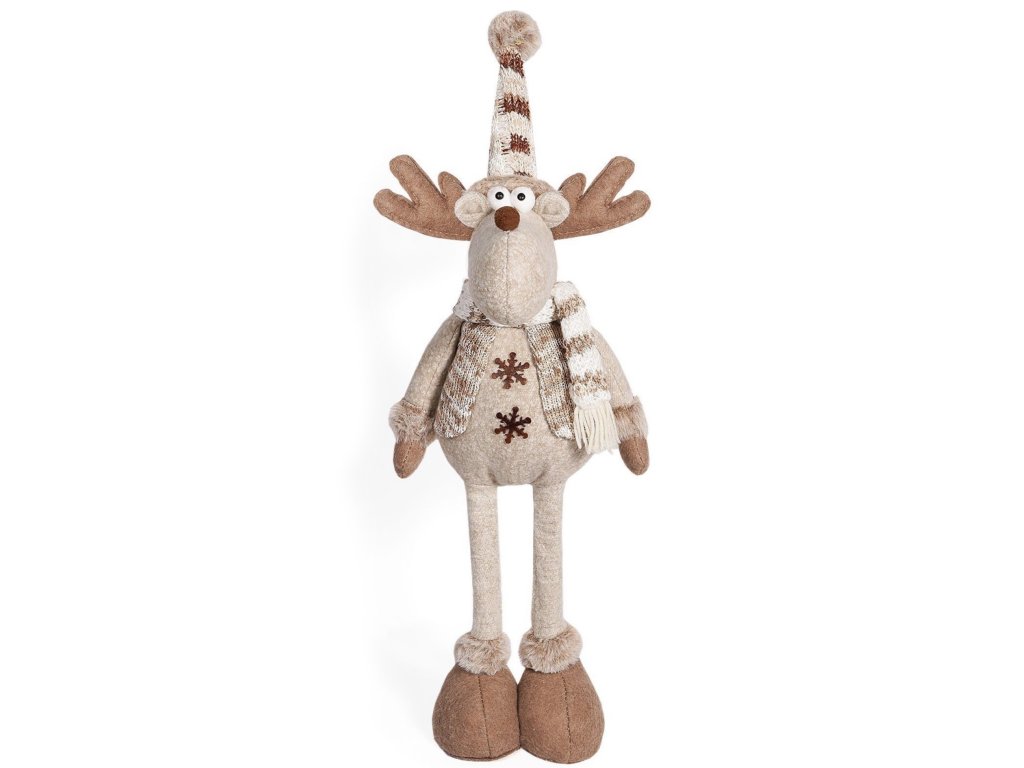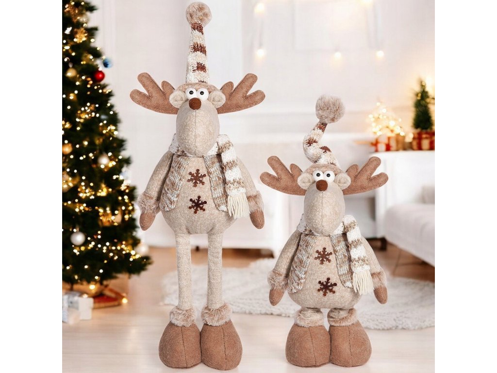 Tento vianočný sob s čiapkou patrí medzi najobľúbenejšie zimné dekorácie. Vďaka teleskopickým nohám si môžete jednoducho nastaviť jeho výšku – či už ho postavíte na podlahu, komodu alebo k vianočnému stromčeku.