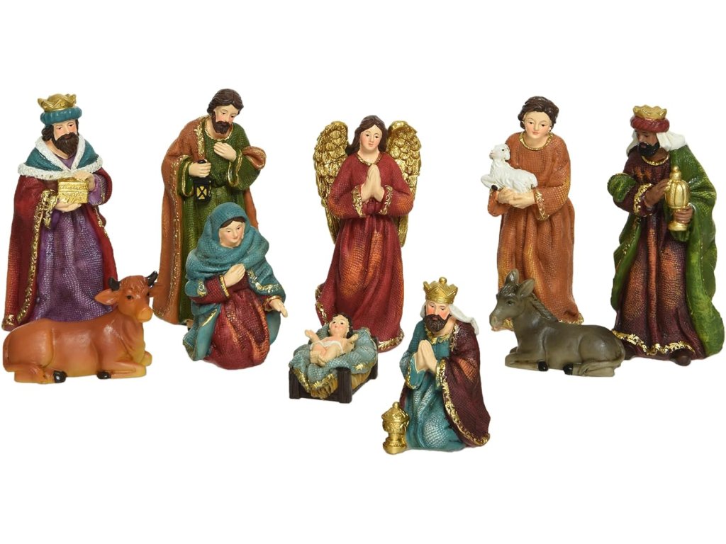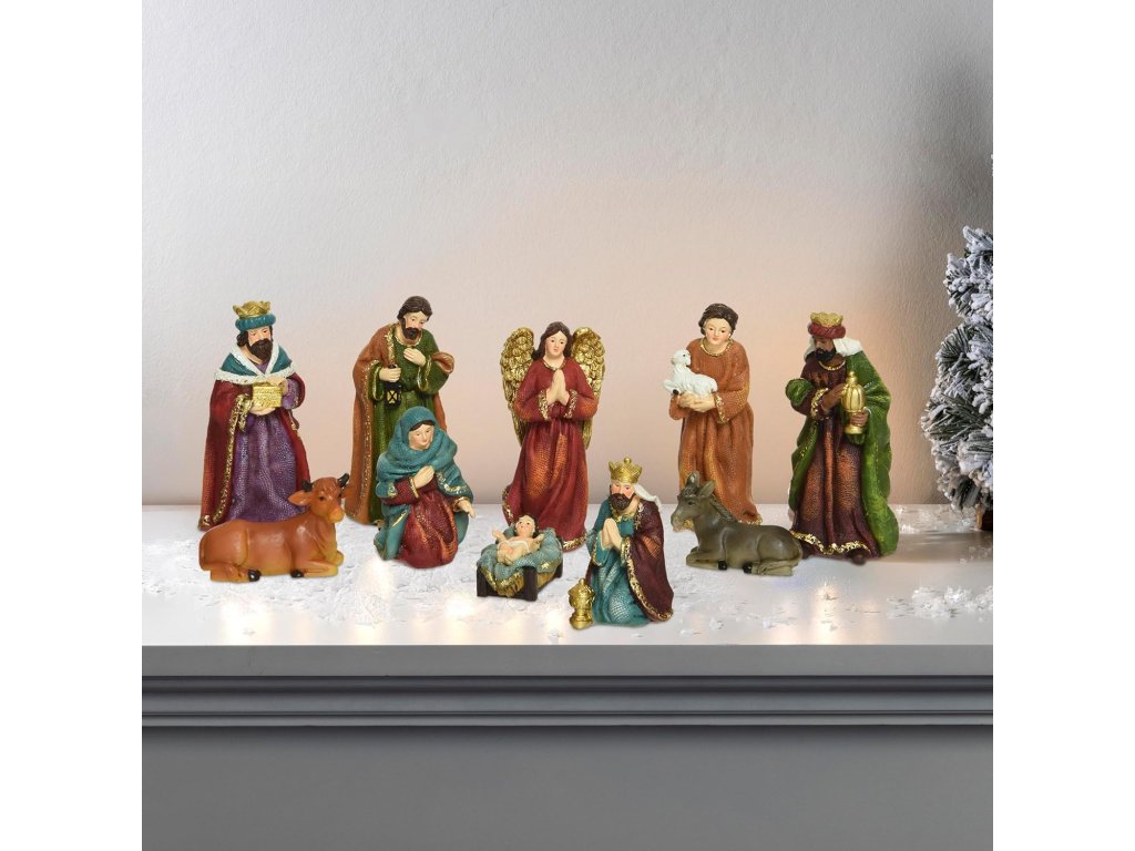 Vianočný betlehem – sada 10 ručne maľovaných figúrok zo živicového kameňa, 11 cm