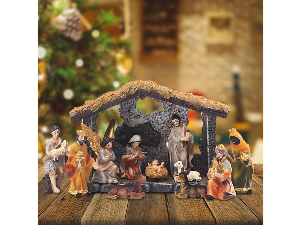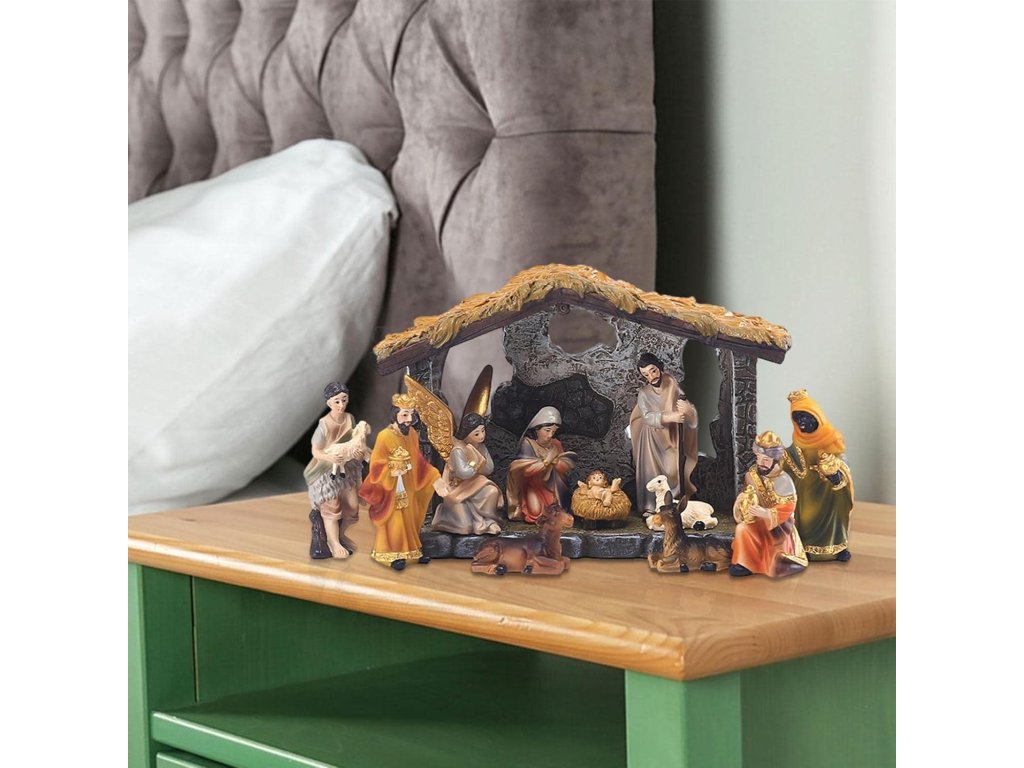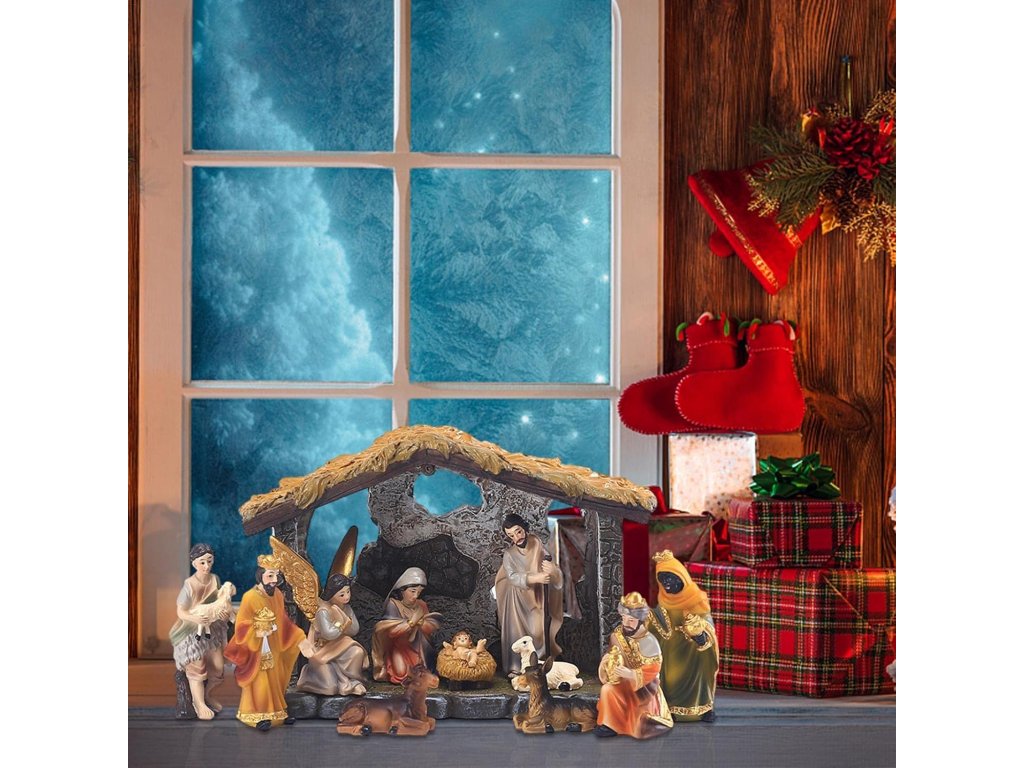 Tento vianočný Betlehem s maštaľkou vytvára jedinečnú atmosféru sviatkov. Obsahuje 10 detailne ručne maľovaných figúrok, ktoré realisticky zobrazujú Svätú rodinu, anjela, troch kráľov, pastiera a zvieratká. Všetko je umiestnené v krásne spracovanej maštaľke so slamennou strechou, ktorá dodáva dekorácii autentický vidiecky charakter.