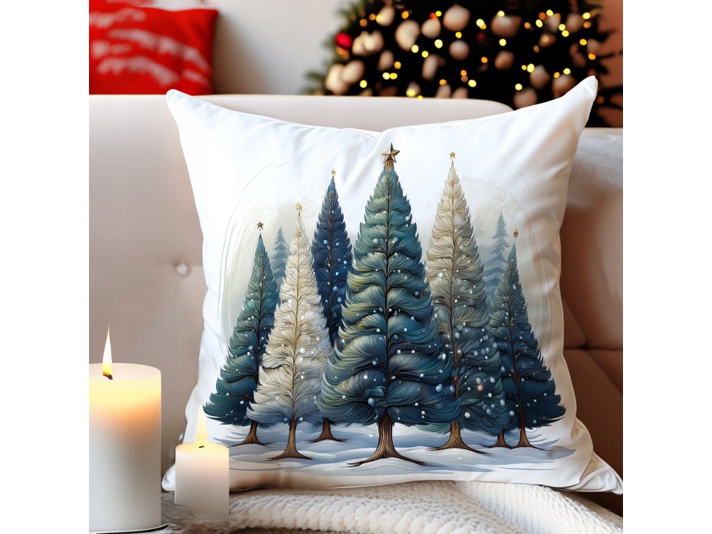 Zahaľte svoj domov do zimnej rozprávky s vianočnou obliečkou Zimný les. Motív majestátnych stromčekov pokrytých snehom v odtieňoch modrej, zelenej a krémovej vytvára elegantnú harmóniu a pokoj. Obliečka pôsobí luxusne, minimalisticky a zároveň hrejivo – dokonale doplní zimné a sviatočné aranžmány.