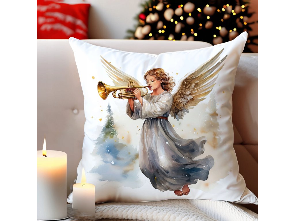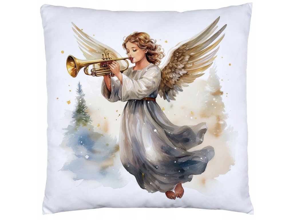 Vianočná obliečka Anjel s trúbkou – nebeský motív v zlatej harmónii 40x40 cm