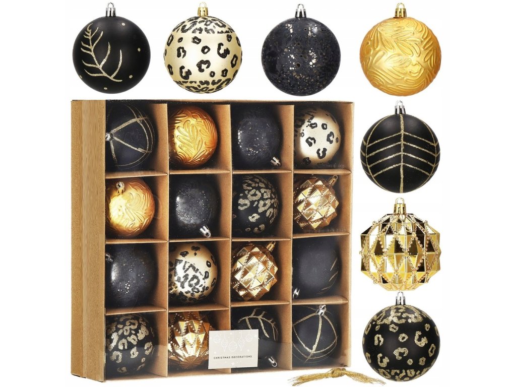 - 16 ozdôb v čierno-zlatých odtieňoch (7 rôznych vzorov)