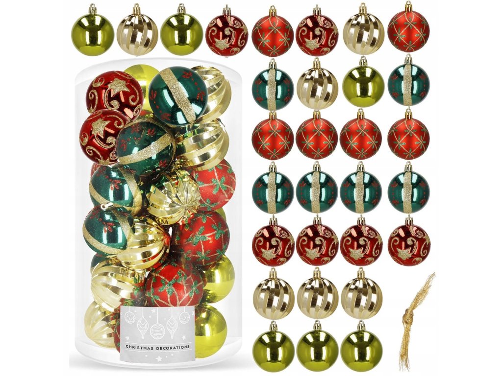 Klasické zlaté, červené a zelené odtiene vytvárajú harmonické Vianoce plné tepla. V tomto sete nájdete 30 gulí s rôznymi povrchmi – od zrkadlového lesku cez jemný mat až po trblietavý gliter a efektné textúry. Ozdoby sú ľahké a nerozbitné, takže si sviatočné zdobenie užijú aj deti – bez stresu a črepín.