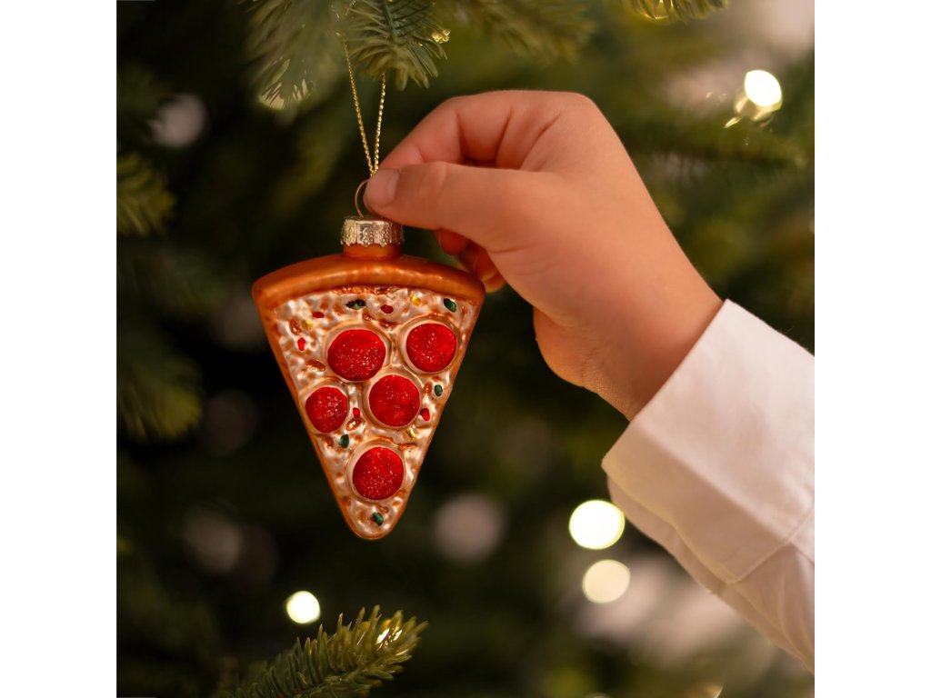 - 🍕 1× sklenená ozdoba v tvare plátku pizze (cca 8,6 cm)