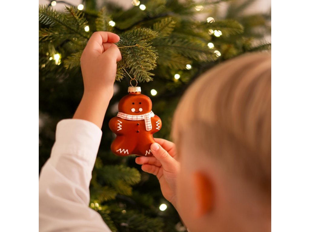 - 🍪 1× sklenená ozdoba v tvare perníčka s bielym šálom (cca 9,8 cm)