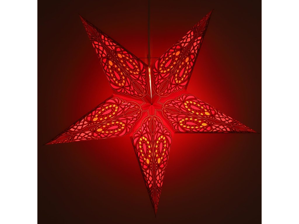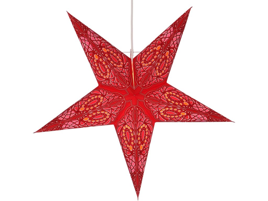 Táto papierová vianočná hviezda vyniká klasickým červeným základom, ktorý dopĺňa bohatý vitrážny vzor v ružovo-oranžových tónoch. Po rozsvietení sa stane hlavným prvkom výzdoby a naplní miestnosť teplým, hrejivým svetlom.