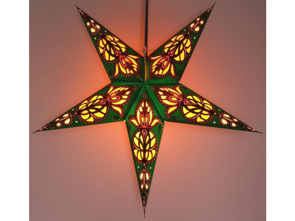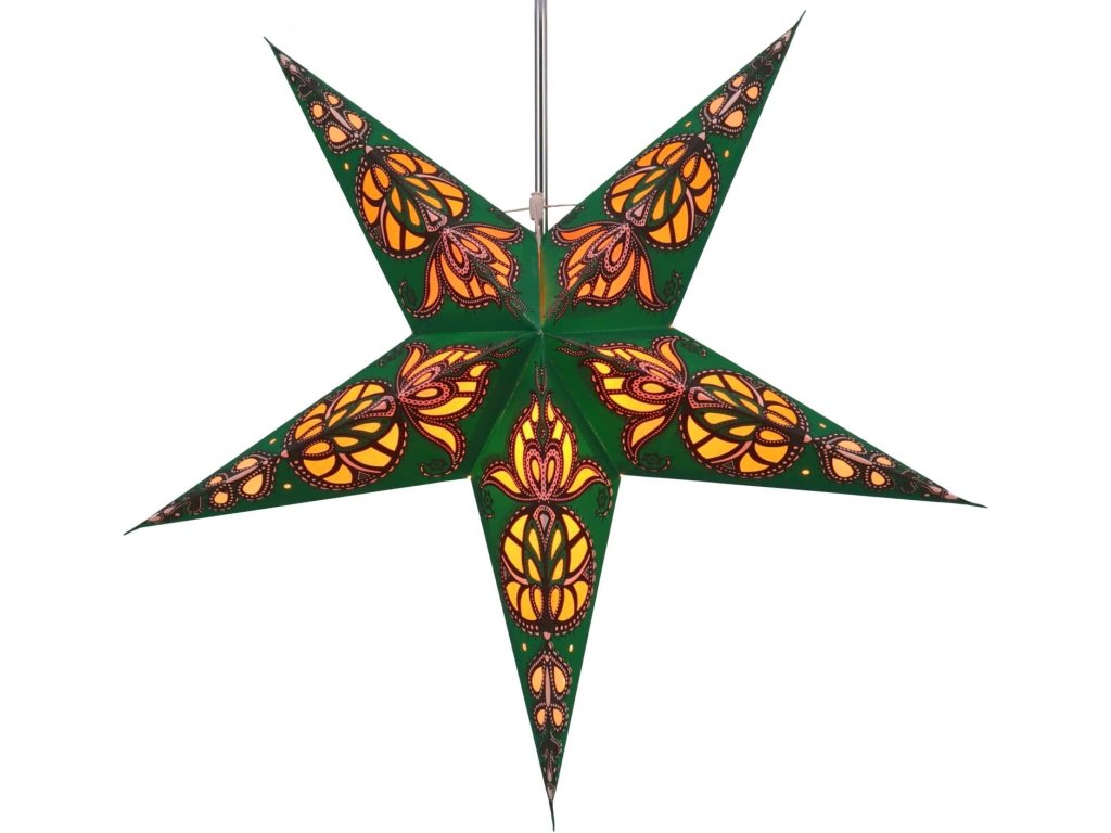 Vianočná hviezda 60 cm – zelená s oranžovo-žltým vitrážnym vzorom