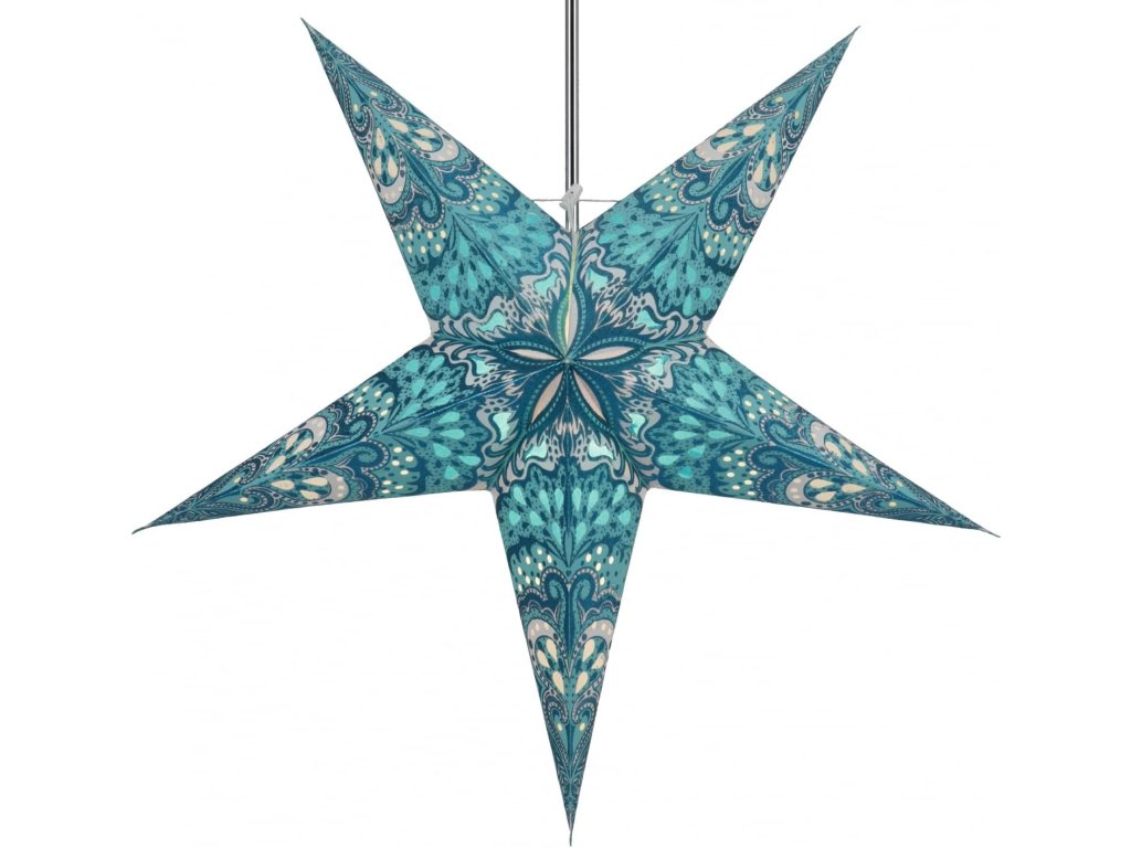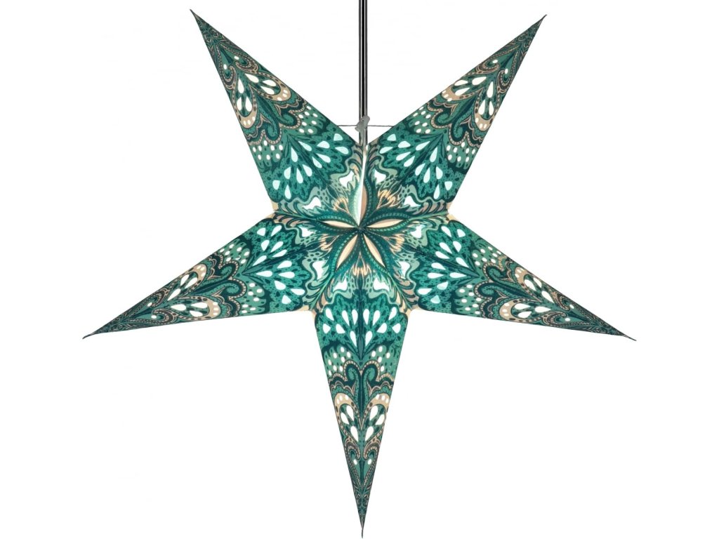 Vianočná hviezda 60 cm – tyrkysovo-zelený vitrážny vzor