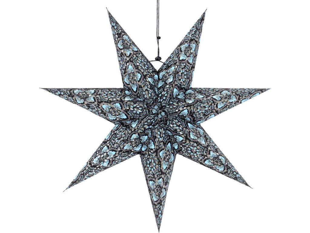 Vianočná hviezda 60 cm – čierna so svetlomodrým vitrážnym vzorom