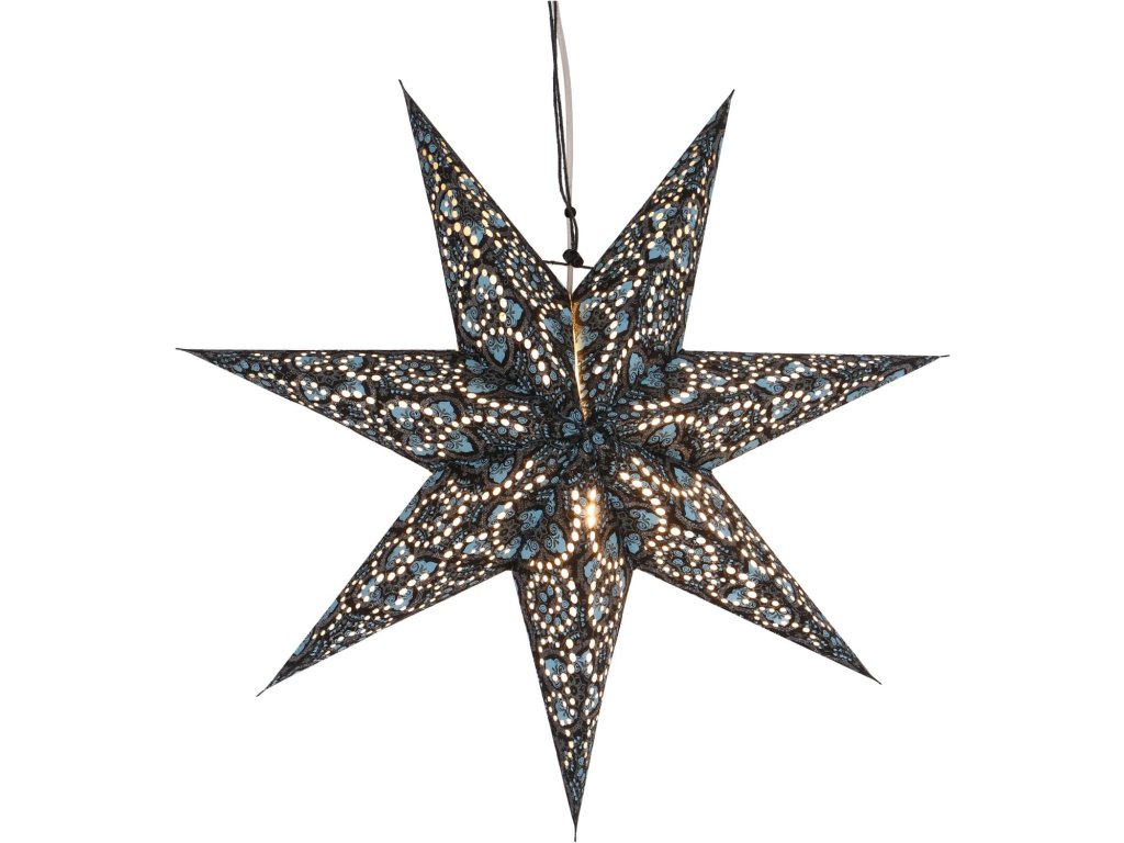 Táto papierová vianočná hviezda vyniká mystickým kontrastom čierneho podkladu a jemného svetlomodrého vitrážneho vzoru. Pri dennom svetle pôsobí decentne a elegantne, no po rozsvietení sa zmení na hviezdnu oblohu plnú svetelných bodiek, ktoré naplnia váš domov sviatočným kúzlom.