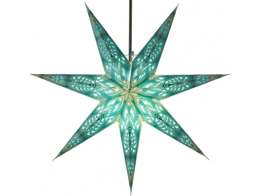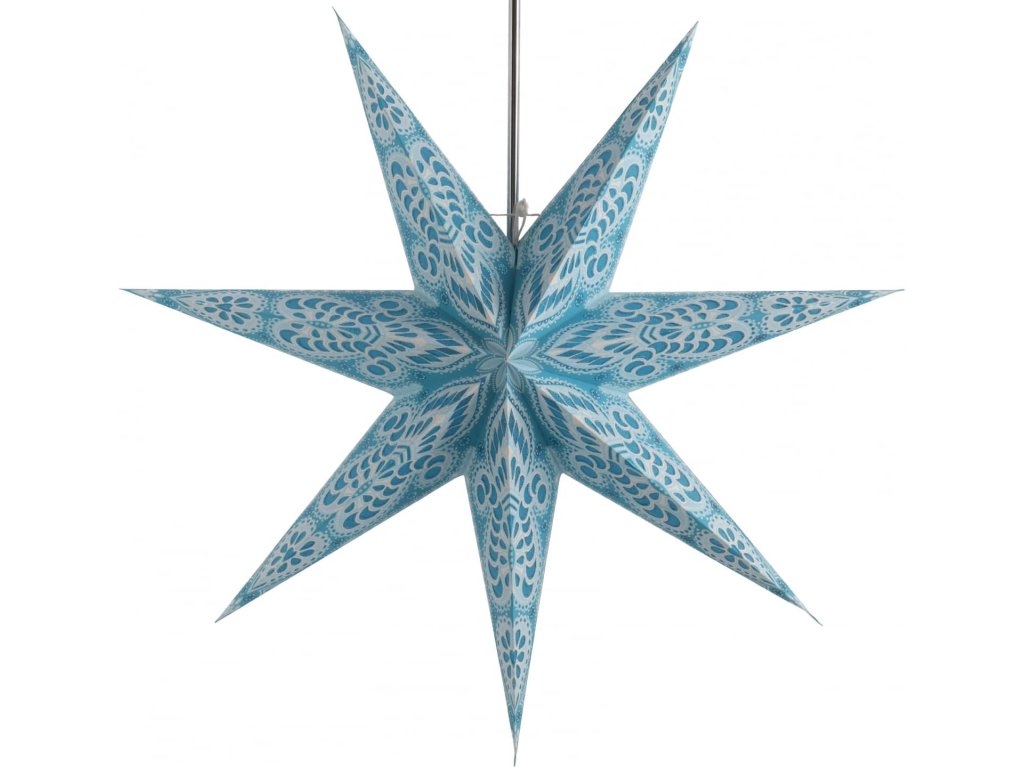Vianočná hviezda 60 cm – tyrkysová s bielym vitrážnym vzorom