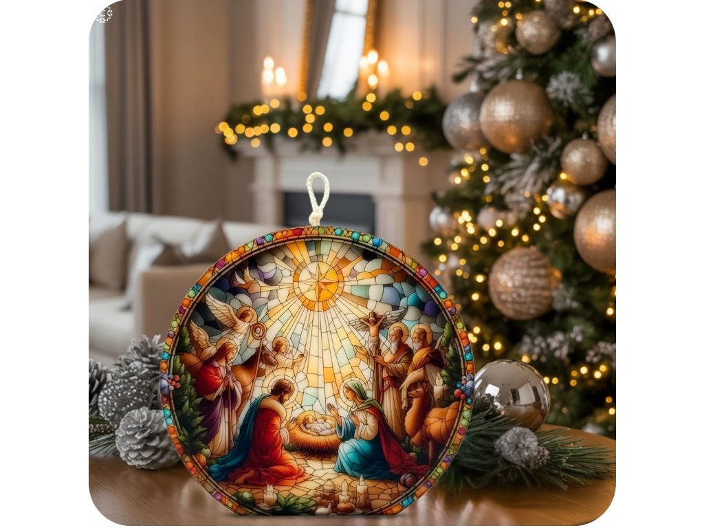 - 🖼️ Vitrážny motív Betlehema s hviezdou, anjelmi a pastiermi