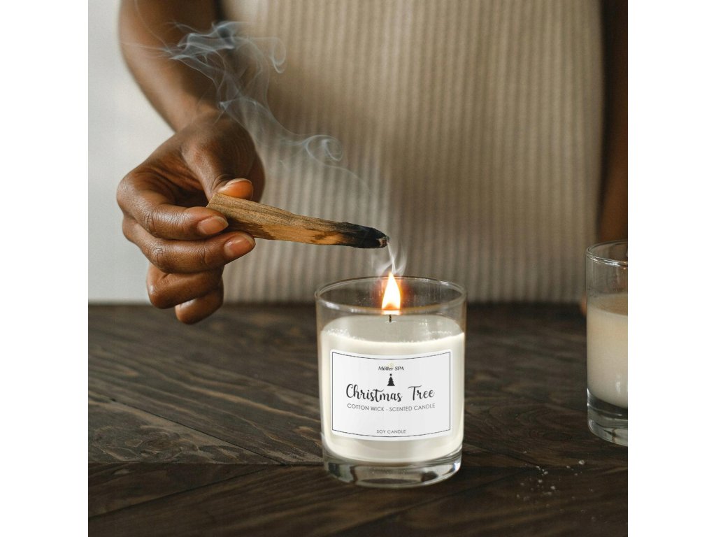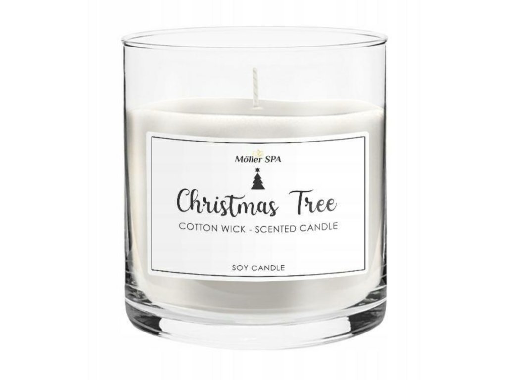 Vianočná sviečka Moller SPA – Christmas Tree s bavlneným knôtom, sójový biely vosk, 60 hodín
