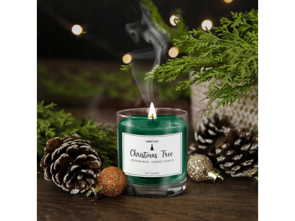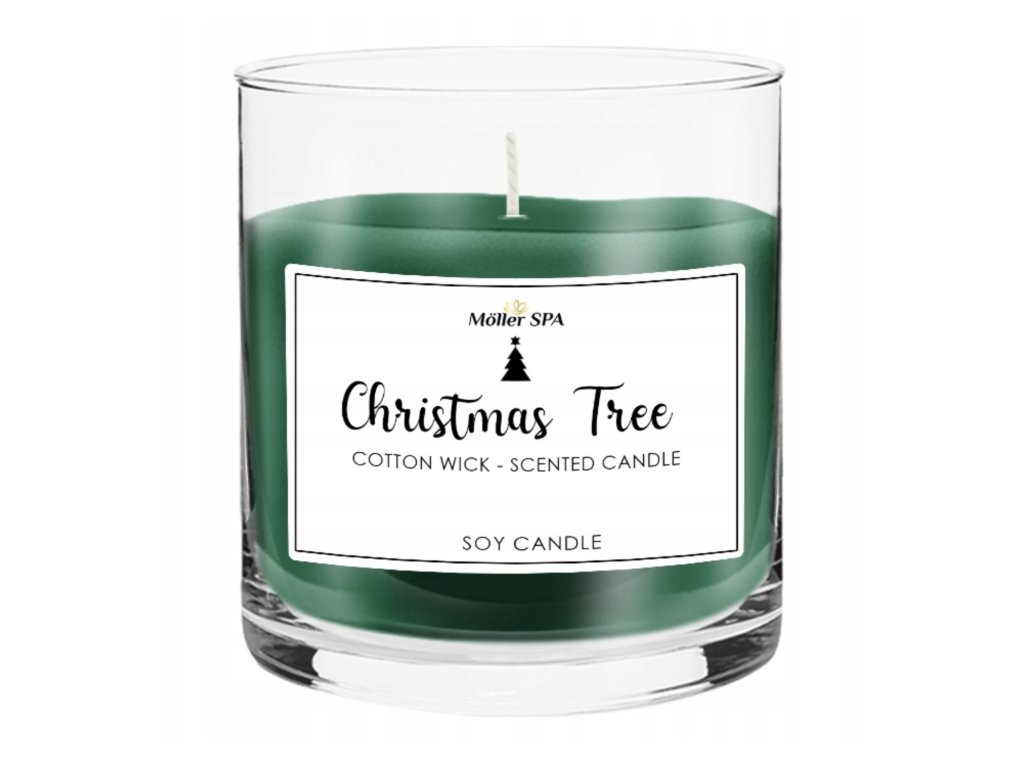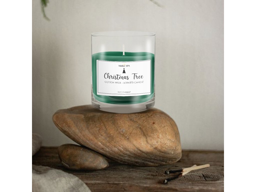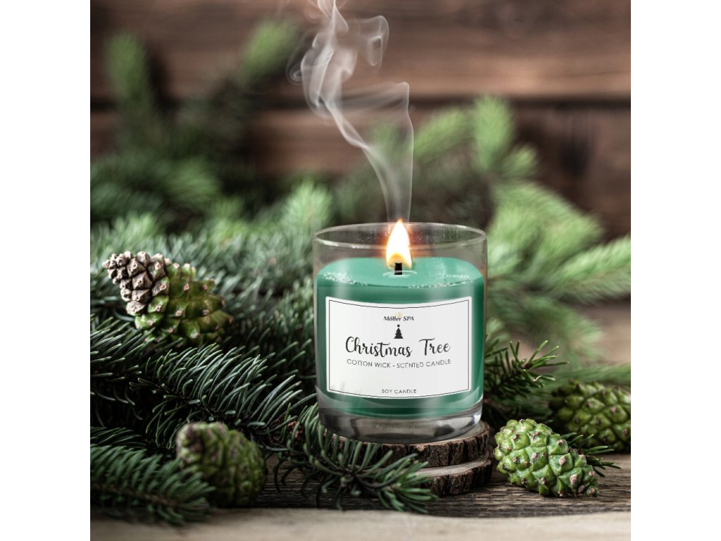 Vianočná sviečka Moller SPA – Christmas Tree s bavlneným knôtom, sójový zelený vosk, 60 hodín