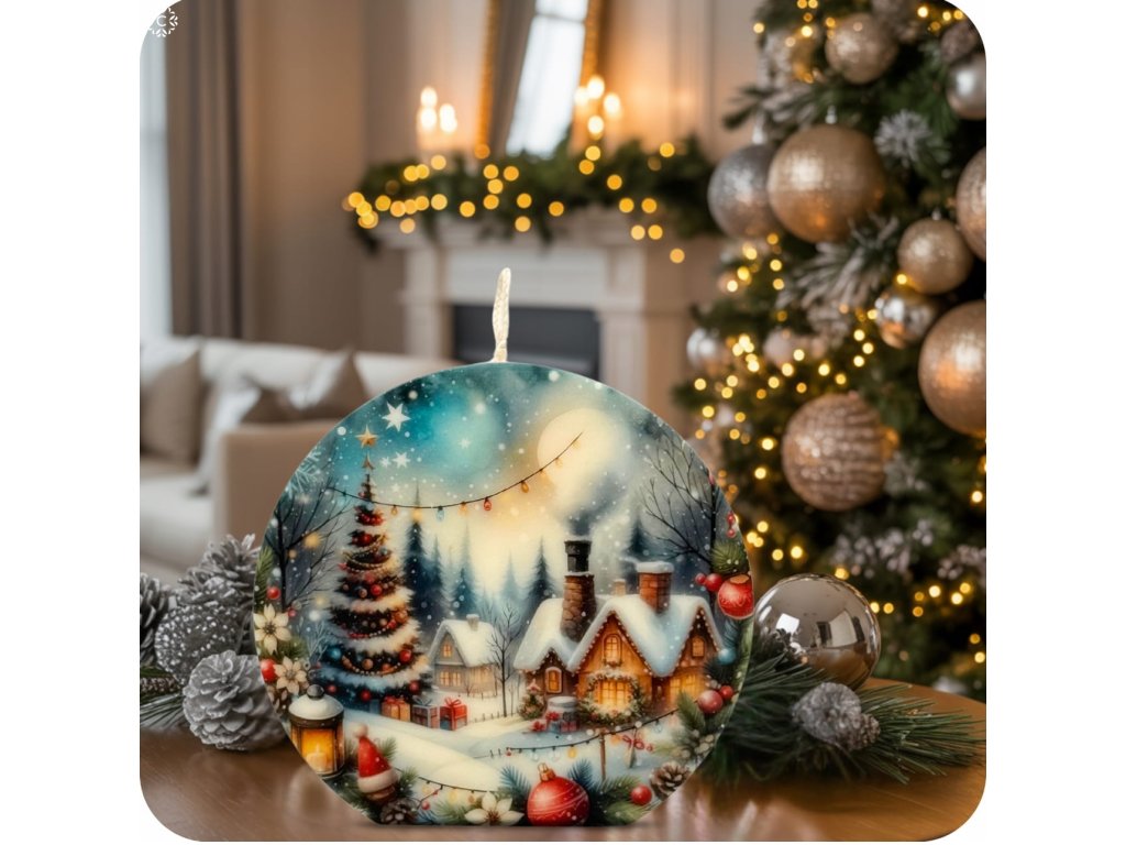 Obraz zasnežených chalúpok, žiariaceho stromčeka a blikajúcich svetielok vytvára nezameniteľnú atmosféru Vianoc. Sviečka je neparfumovaná, vďaka čomu neruší vôňami a vyniká jej vizuálne spracovanie. Luxusné balenie v ozdobnej krabičke robí z tohto kúsku ideálny darček pre vašich blízkych alebo elegantnú výzdobu do vašej obývačky.