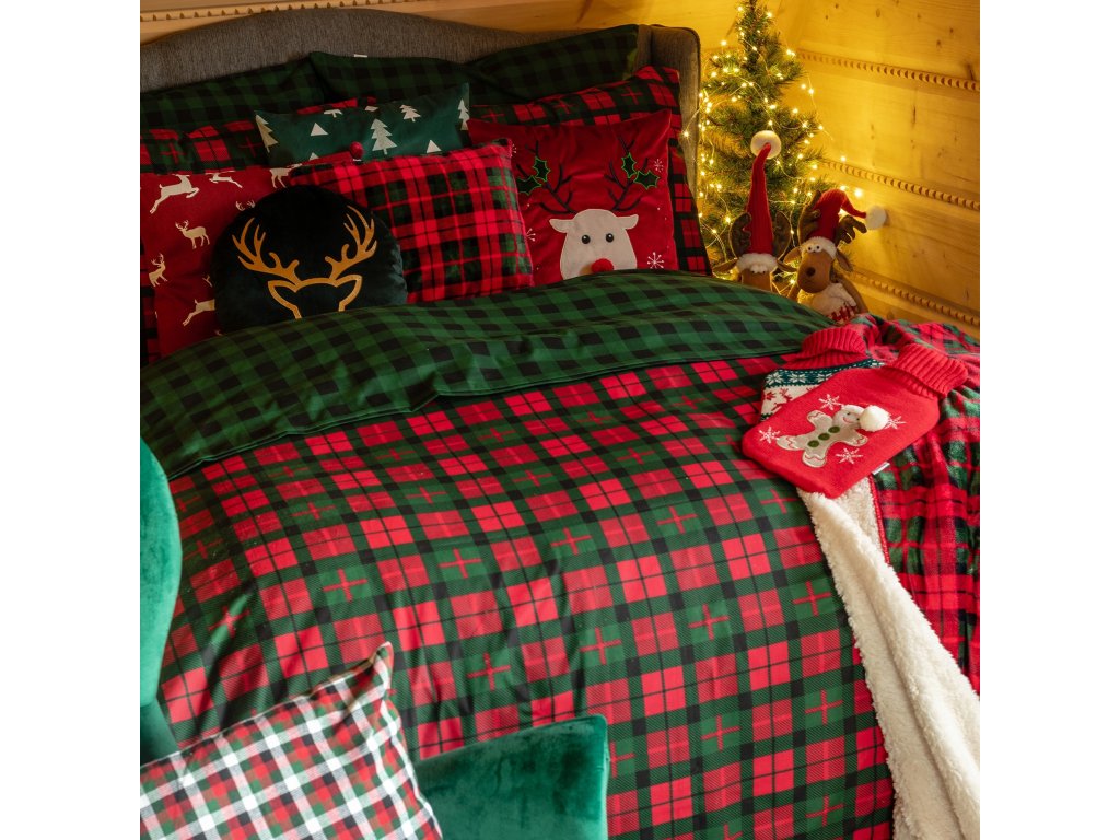 Vianočné bavlnené obliečky – červeno-zelená posteľná bielizeň v károvanom vzore