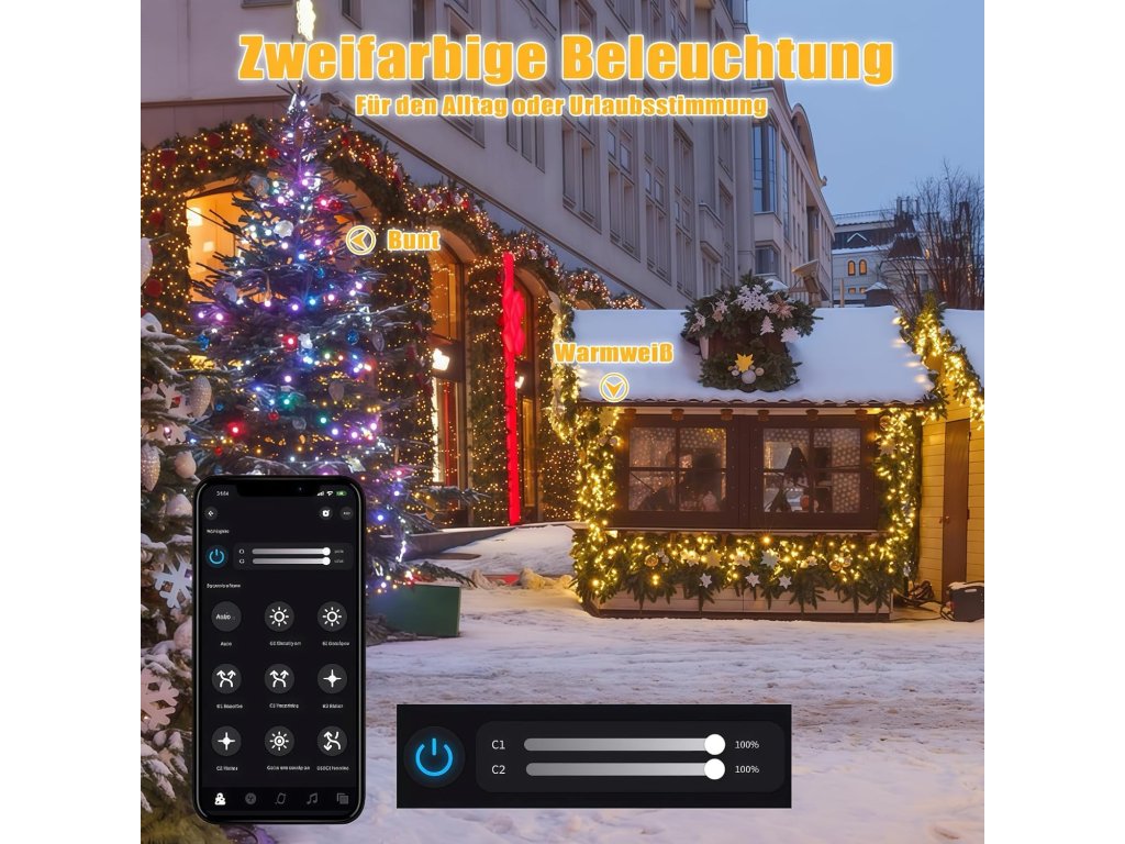 Táto moderná Smart LED vianočná svetelná reťaz prináša kombináciu elegantného teplého bieleho svetla a hravých RGB farieb, ktoré dokonale rozžiaria každú zimnú dekoráciu. Pomocou mobilnej aplikácie (iOS/Android) si nastavíte farby, jas, 17 svetelných režimov, časovač a dokonca aj hudobný mód reagujúci na rytmus hudby.