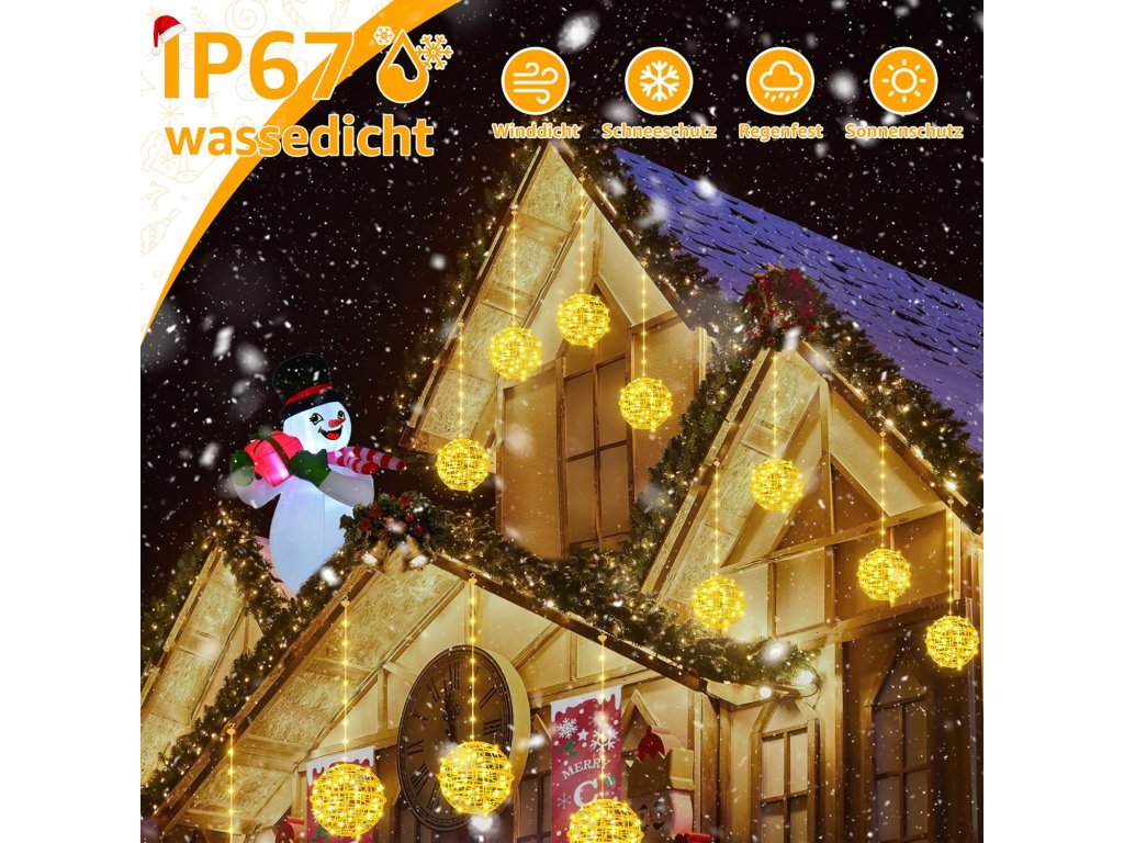 Svetelná reťaz ponúka 8 rôznych svetelných režimov – od jemného blikania až po stabilné svietenie. Vďaka časovaču a 4 režimom stmievania si prispôsobíte jas aj efekt presne podľa nálady. Výhodou je aj možnosť prepojenia až 3 sád za sebou, čo umožňuje dekorovať väčšie plochy bez ďalšej zásuvky. Krytie IP67 zabezpečuje vysokú odolnosť voči snehu, dažďu a mrazu – ideálne na celú zimnú sezónu.