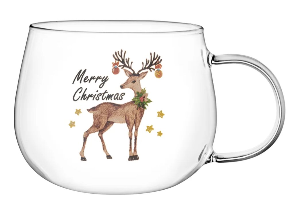 Vianočný sklenený hrnček s jeleňom a nápisom Merry Christmas 430 ml