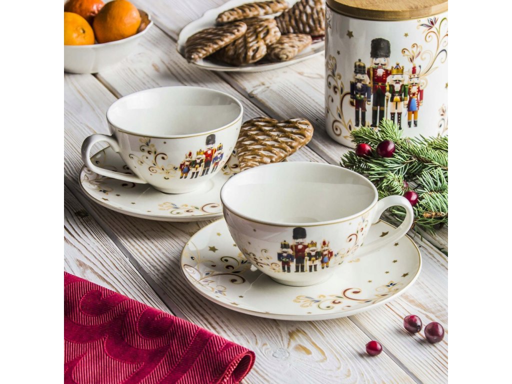 Sada vianočných šálok Luskáčik – porcelánové šálky so spodkami 2×350 ml